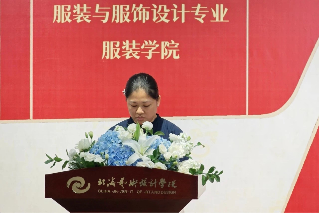 展览开幕式上,副校长陶立阳在致辞中表示,学校对中华优秀传统文化教育高度重视,此次作品展体现了学生对优秀传统文化的深刻理解与创新表达。展望未来,陶立阳副校长鼓励学生利用人工智能等科技手段,将传统与现代融合,推动中国传统服饰文化走向世界。