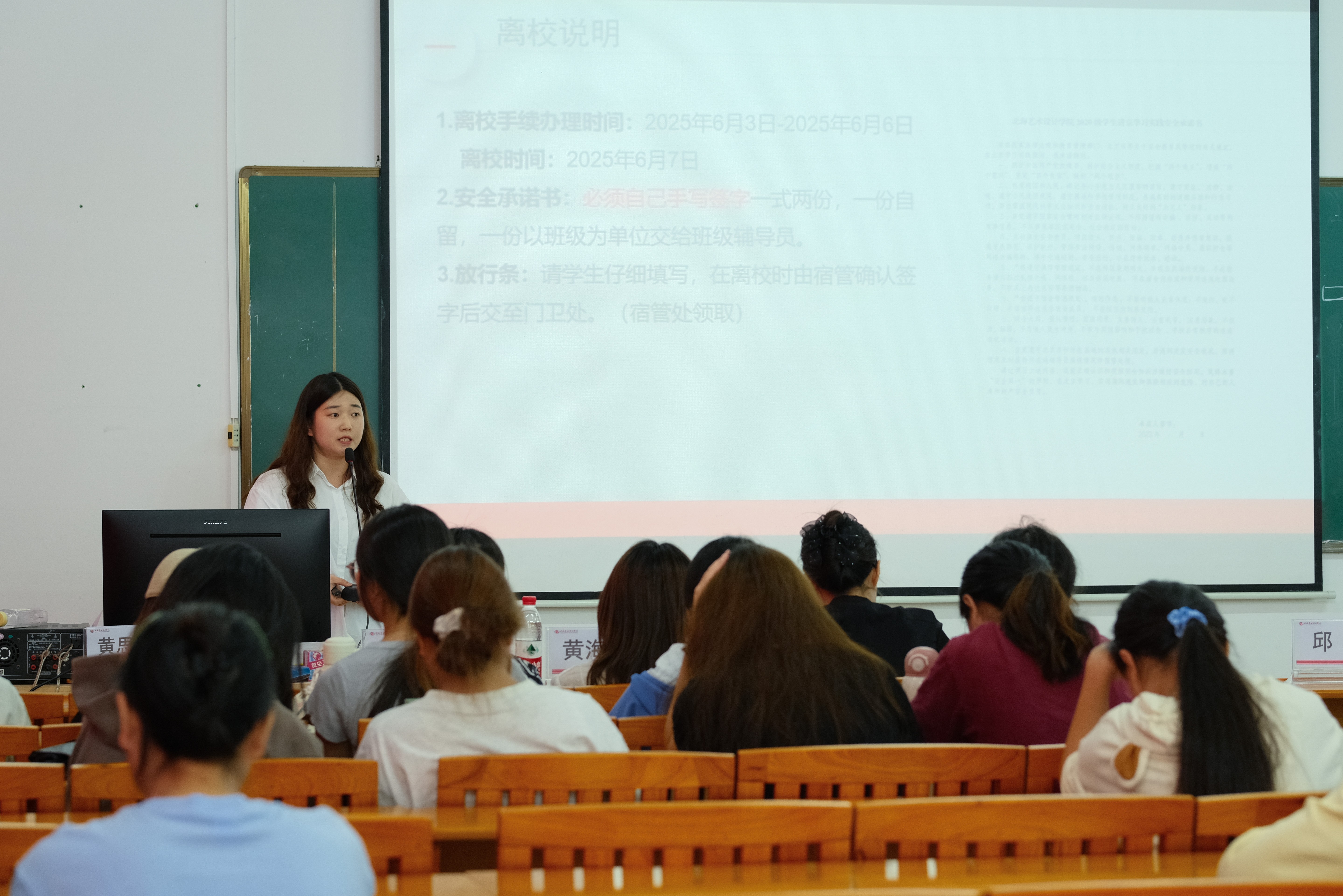 2025年5月26日,教育学院上京动员大会在公德楼205顺利召开。学校邱杰副校长出席大会并讲话,教育学院院长熊秀峰、党支部书记黄思敏、副院长蒙剑英、教务办主任黄海林、学前教育教研室主任覃思、学工办副主任余黎泓及2022级学前教育专业全体同学参会。本次大会由党支部书记黄思敏主持。