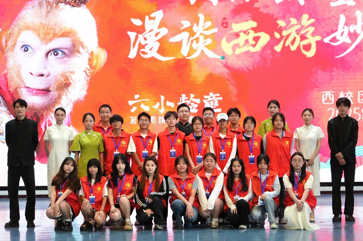 5月28日下午,北海艺术设计学院文学院以一场兼具学术深度与文化温度的活动,携手著名表演艺术家六小龄童老师共同架起经典与时代的交融纽带,让《西游记》的妙谛在当代青年中焕发新生。本次活动由文学院常务副院长梁镨文主持,通过丰富的活动形式与富有深度的讲座,在校园内掀起西游文化热潮,引发师生对经典传承的热烈讨论。