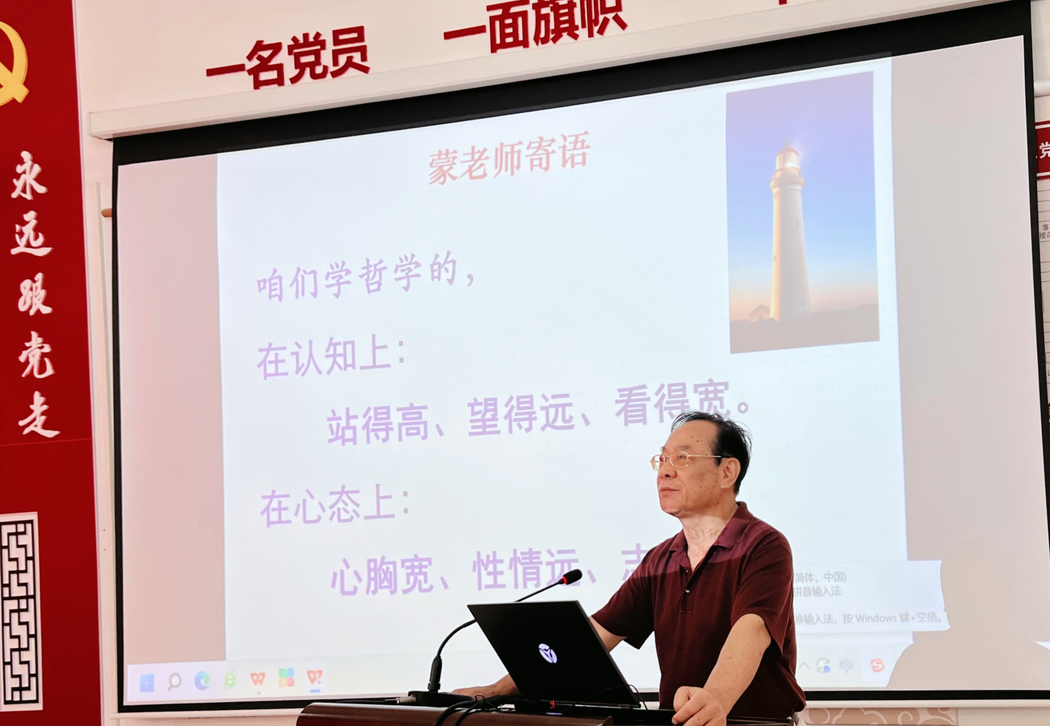 会议第二项议程,教师代表向新生寄语。外聘教授代表许素菊教授在发言中表示,学哲学不仅是学知识,更重要的是学会思考。她鼓励同学们在努力培养哲学思维、批判性思维和人文关怀中增长智慧。哲学之路漫漫,探索永无止境,她寄望新生们在此埋下热爱哲学的种子,以勤奋和汗水浇灌,锚定远大的目标,持之以恒的奋斗,在哲学的海洋里遨游,书写自己精彩的哲学人生。关德荫老师在新生寄语中强调,大学是审视自我,探索生命意义的黄金阶段,愿同学们时刻保持对生活的反思与追问,不要随波逐流,在哲学体系上找到属于自己的独特人生价值坐标。同时,希望同学们在钻研哲学理论时,不忘关注社会,把哲学所思转化为推动社会进步的实际行动,用哲学智慧为世界添彩。