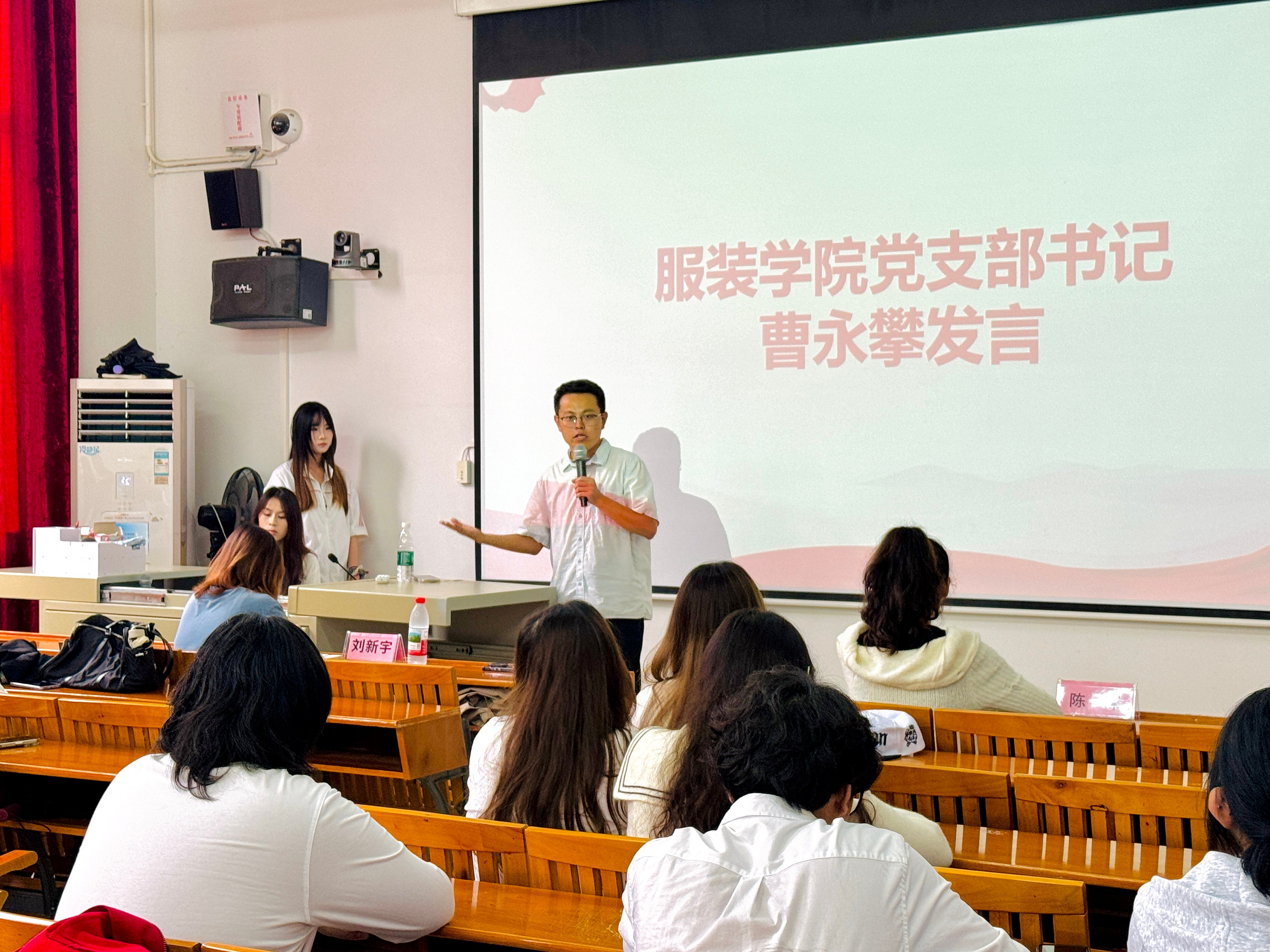 服装学院党支部书记曹永攀、团总支书记陈琛先后发表讲话。曹永攀书记强调,学生干部们需在工作中践行 “学思践悟”,既要扎实锤炼业务能力,更要主动发挥榜样引领作用,以 “服务为本、奉献为核” 的理念,实现个人成长与集体价值的同频共振。陈琛书记则以 “积极心态 + 责任担当” 为核心寄语,要求全体成员保持工作热情、严守组织纪律,在活动筹备、宣传推广等工作中锚定目标、精益求精;同时需坚守廉洁底线,始终维护学生工作的纯粹性与公信力。