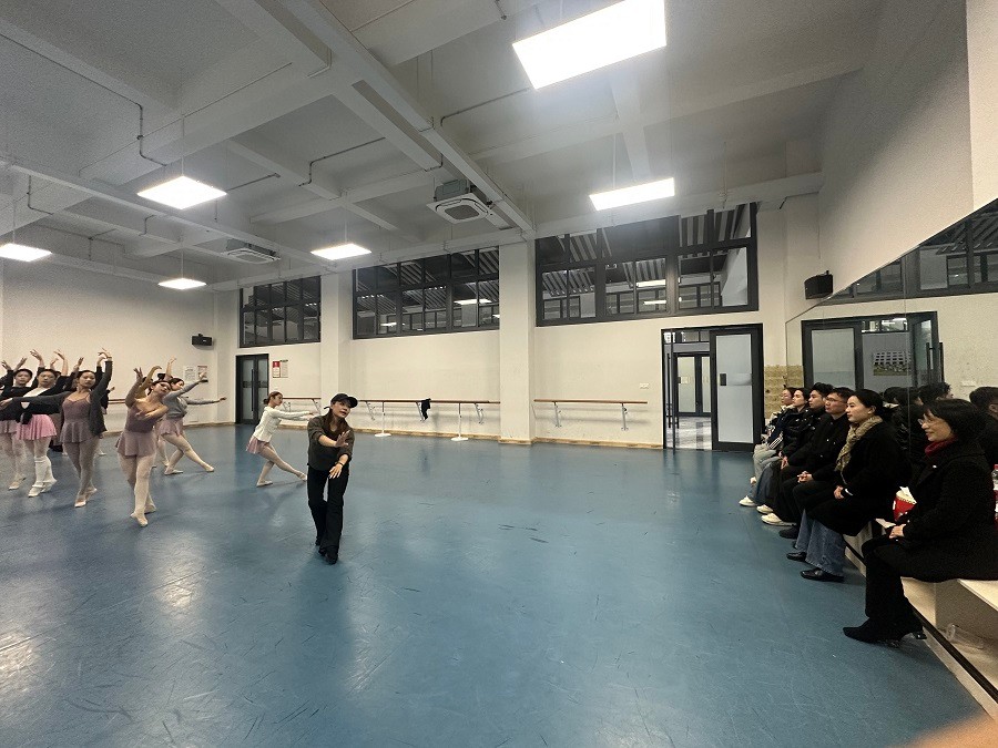 北部湾大学音乐舞蹈学院一行走进舞蹈教室,近距离观摩课堂教学实况,围绕教学方法革新、课程思政有机融入、艺术人才培养体系构建等关键议题开展互动研讨,以实地观摩和现场交流的形式,搭建起两校教学经验互鉴、专业能力共进的坚实桥梁。