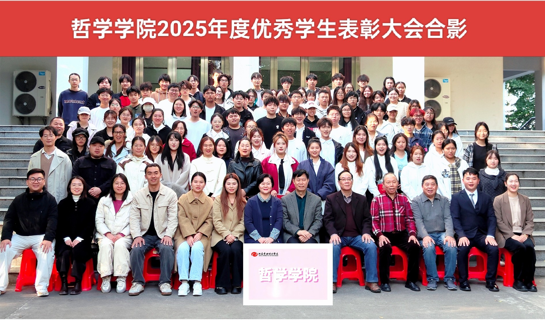 2026年1月12日下午,哲学学院在西区伦理楼107教室举行2025年度优秀学生表彰大会对过去一年在各方面表现突出的优秀学生和先进集体进行集中表彰。大会以"表彰先进、凝聚人心、鼓舞斗志"为宗旨旨在树立榜样,激励全院学生奋发向上。哲学学院院长蒙绍荣、党支部书记谢伟、副院长覃传茵、副院长梁兵部分外聘教授代表出席大会。大会由哲学专业2402班孙渝莟同学主持,学院全体教师和在校学生参会。