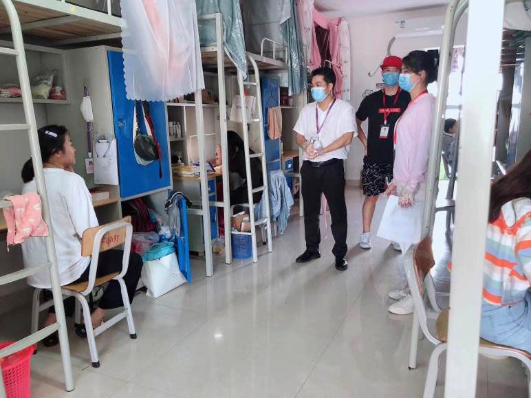 根据教育厅“高校组织复学的通知”要求,我院及时通知学生返校。为做好校园在疫情防控工作落深、落细、落实,5月24日下午4:00学院李水亮副院长一行深入学生宿舍西校区女生2栋男生7栋、东校区女生14栋、男生6栋,对学生宿舍卫生消毒,人员防护等防疫措施进行了检查走访。