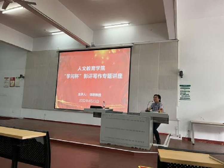 为调动我院学生参加“学问杯”影评写作的积极性,更好完成影评大赛。2022年4月23日,我院在伦理楼107教室举办了“学问杯”影评写作专题讲座。主讲人是我院汉语言文学教研室主任陈敢教授。人文教育学院汉语言文学与哲学专业共50余名学生参加本次讲座。