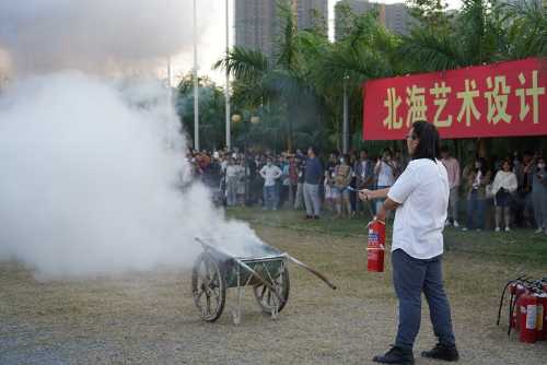 随后北海艺术设计学院保卫处副处长王瑞轩给在场师生做消防器材理论现场讲解。王瑞轩副处长主要讲解了有关火灾现场的应急处置方案灭火器的使用原理以及相关的注意事项并亲自演练了灭火器的使用方法在认真听讲及观摩后,学生们进行了实际操作演练亲自体验了现场灭火的过程面对熊熊燃烧的火堆学生们表现的十分沉着熟练地按照灭火的步骤和方法将汽油燃起的浓烟大火成功的迅速扑灭做到了冷静沉着的面对突发现象成功快速的扑灭大火的消防标准