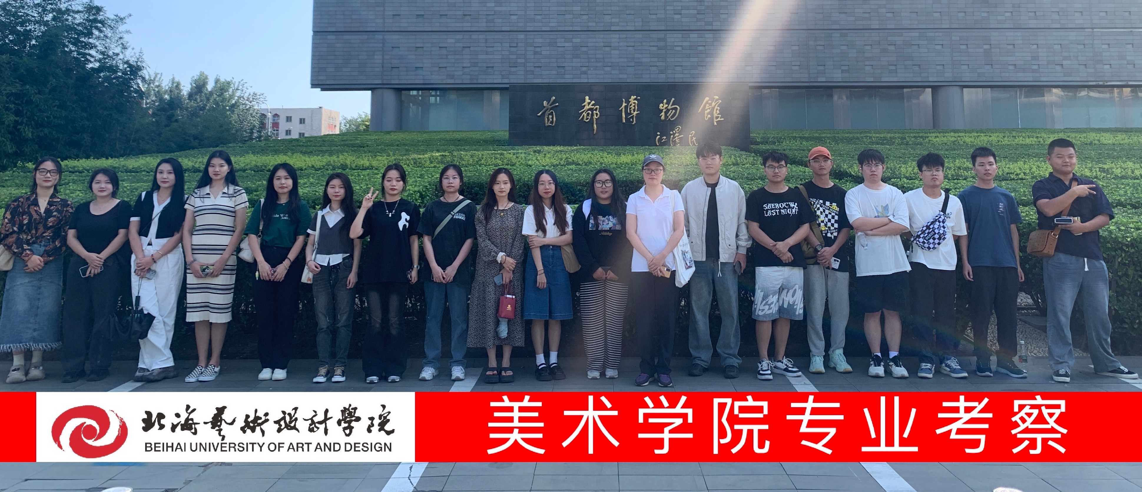 2023913日,北海艺术设计美术学院专业教师、北京实践基地(沙河)班主任老师带领2020级绘画专业的学生深入首都博物馆开展专业考察实践课程。本次专业考察课程内容以首都博物馆建馆历史与《辉煌中轴》展览为主导,通过集中参观考察、研究员现场讲解、自主考察、考察心得分享等多种形式,将课堂搬到博物馆,坚持专业实践考察与理论学习相结合的教学模式。