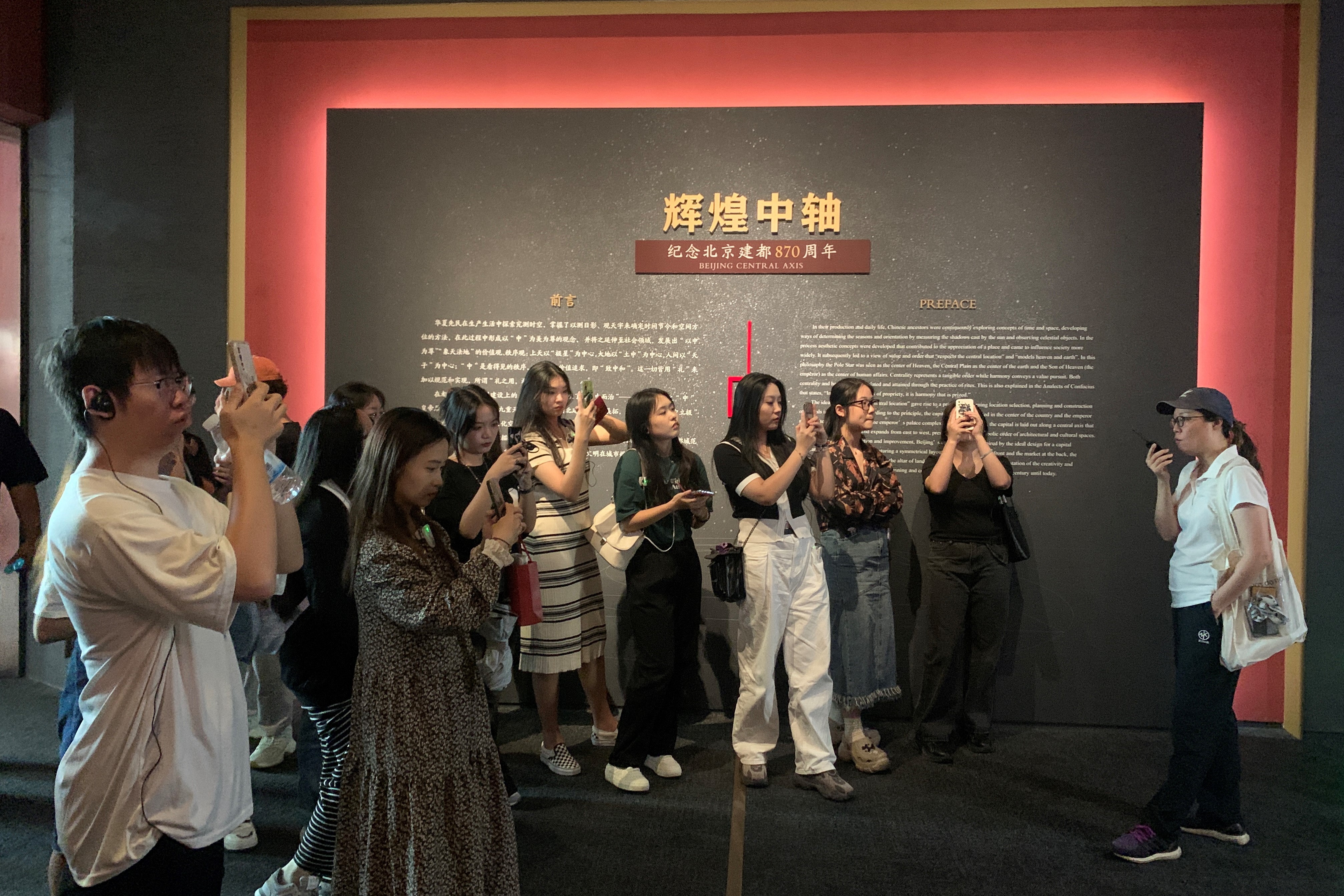 考察活动,重点讲解了北京中轴线申遗特展《辉煌中轴——纪念北京建都870周年》。通过讲解,使同学进一步了解北京中轴线被称为北京城的脊梁和灵魂的历史渊源及中轴线在北京历史的发展进程中所体现的文化核心凝聚作用,也是北京文化的核心内容。