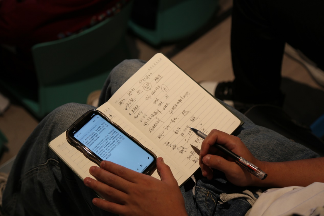 在课堂的最后一刻钟,同学们积极的对张云老师提出心中的问题,例如:张云老师平时灵感匮乏的时候应该怎样去寻找灵感;张云老师在成立团队的时候是先成立了团队,还是在路上寻找志同道合的伙伴;近年来大环境对于环艺专业的同学不是特别的友好,作为环艺专业的