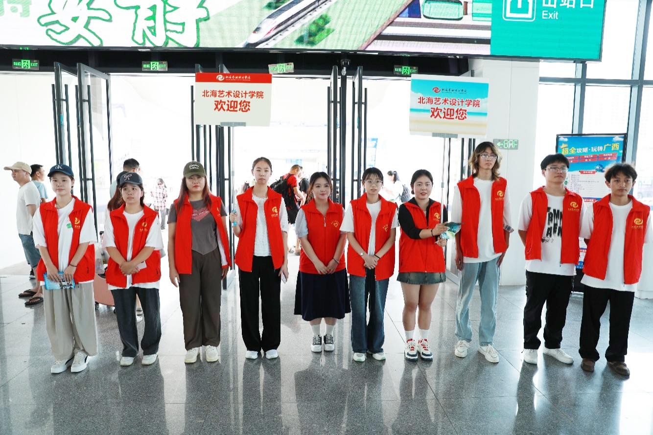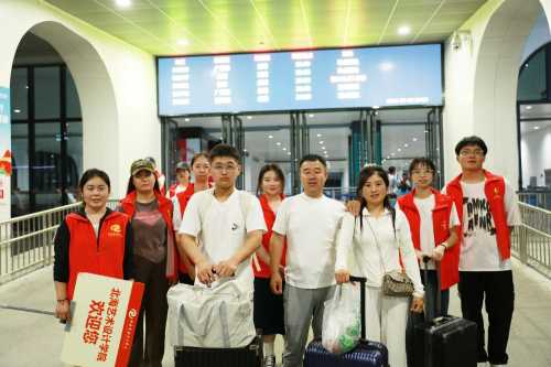 在火车站,建筑与环境艺术学院的志愿者们身着一袭整齐划一的学校制服,手持印有鲜明学校标识的引导牌,早已守候在站口,静待新生与家长们的到来。随着列车缓缓驶入站台,志愿者们即刻行动起来,他们面带微笑,热情地接过新生手中的行李,那份重量仿佛也承载着对未来的期许。随后,他们细心地引导着新生,一步步迈向学院精心布置的迎新接待点。