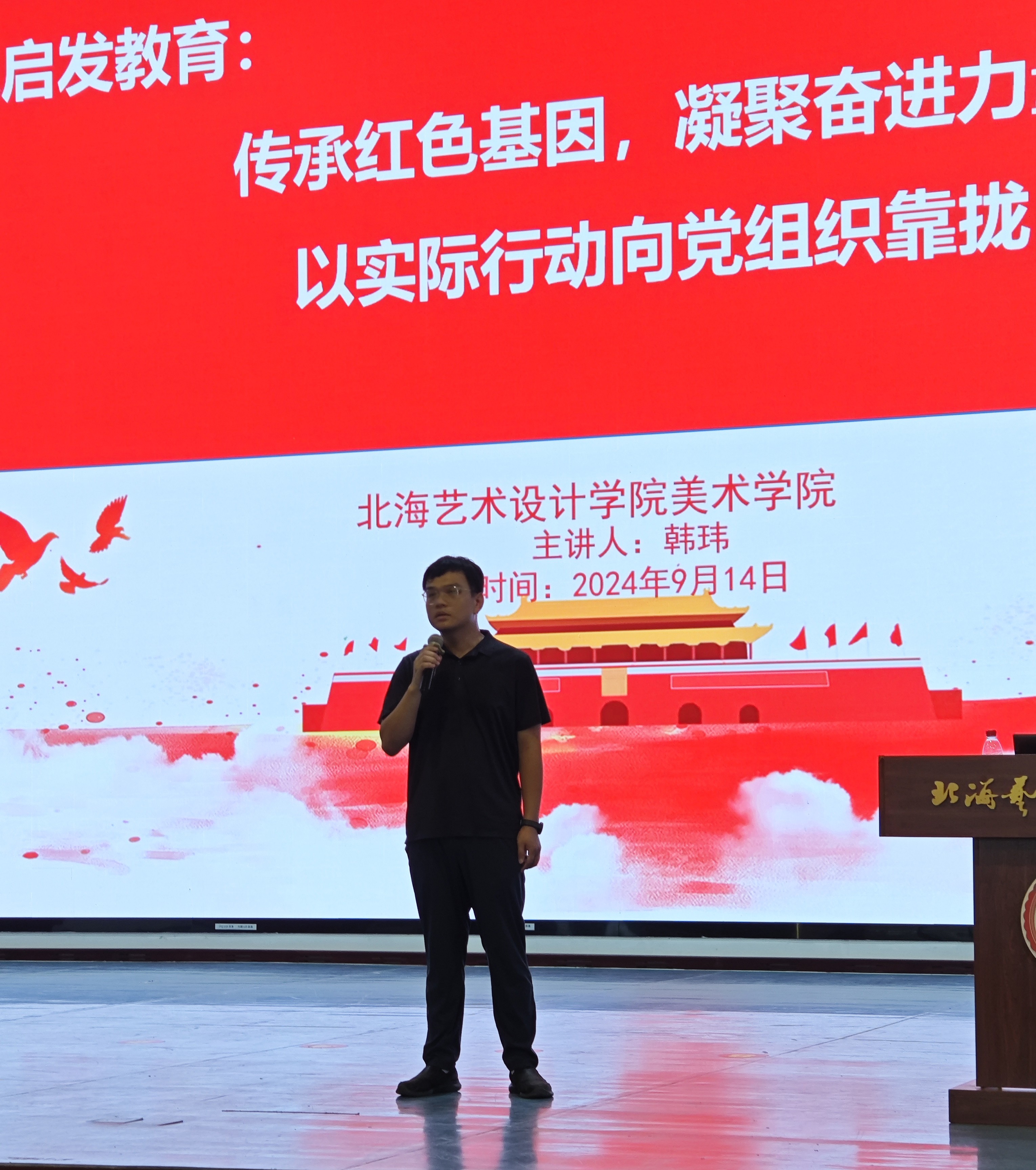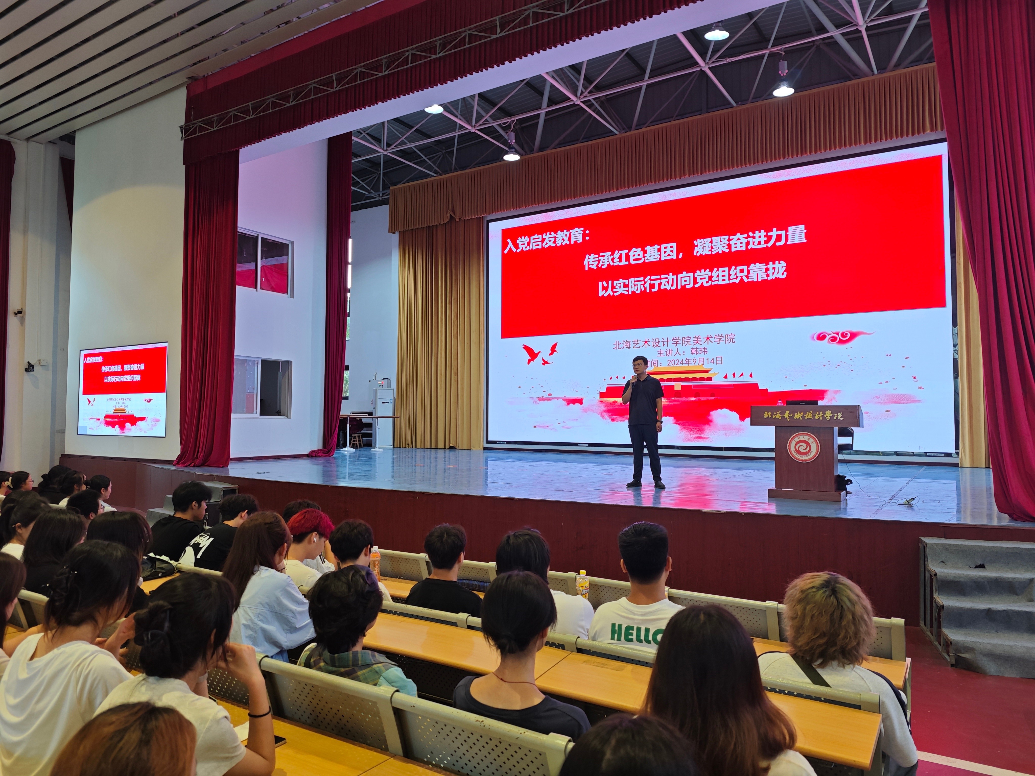 2024914日下午15时,为深入学习贯彻习近平新时代中国特色社会主义思想,全面落实新时代党的建设总要求和新时代党的组织路线,美术学院党总支书记韩玮同志在学校大礼堂为美术学院2024级新生开展了一次意义深远的入党启发教育。