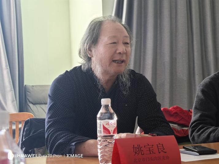 北京市门头沟区美术家协会主席姚宝良作总结讲话。他肯定了校企合作的重要性,同时介绍了门头沟区的丰富自然景观与深厚历史文化底蕴,期待学院、各企事业单位走进京西门头沟,在门头沟这片文化的沃土上,发现和探索艺术灵感,结出更充盈的文化艺术的硕果。