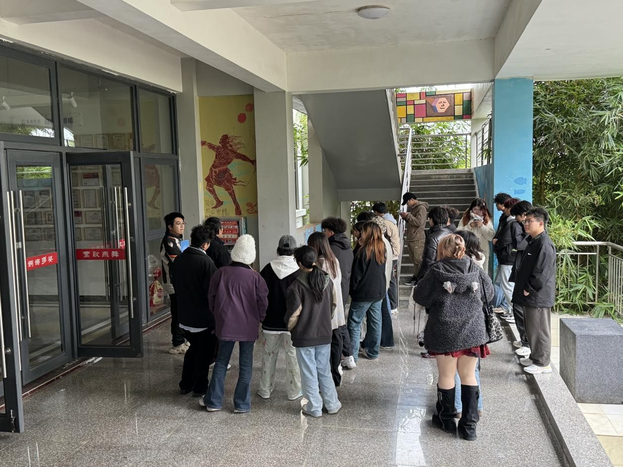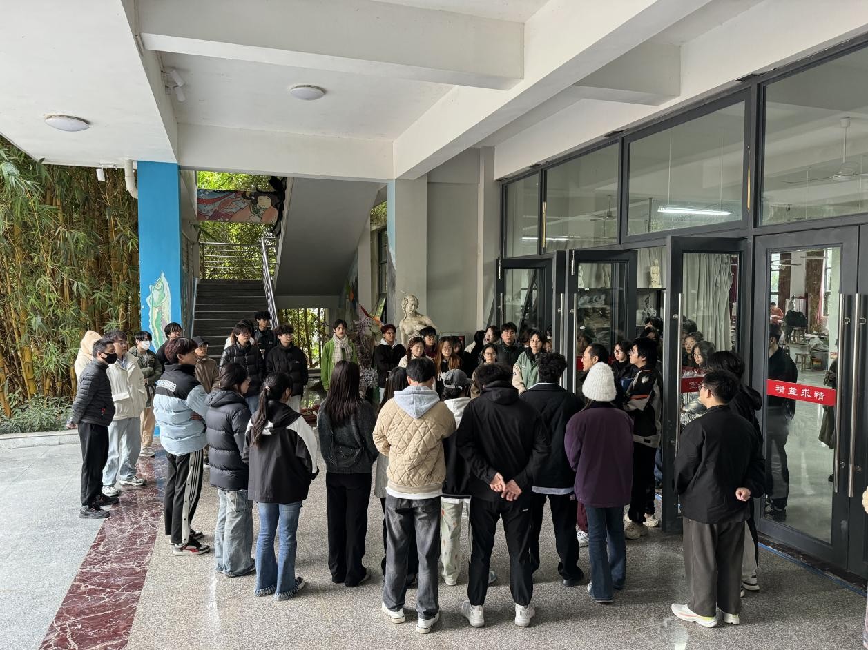 1213日下午,美术学院成功举办了壁画选修课结课汇展。此次汇展汇聚了两个班级共80名学生的24组精彩壁画作品,不仅展示了学生们在课程中辛勤努力的成果,也为大家提供了一个交流学习的平台。美术学院院长刘斌和执行院长龚为亲临现场,对参展的每一幅作品都进行了鞭辟入里的点评与深入浅出的指导。他们的点评如春风化雨,既肯定了学生们在艺术创作上的独到见解与不懈努力,又中肯地指出了作品中存在的不足与提升空间。刘斌院长更是以自身丰富的壁画从业经验和敏锐的洞察力,为学生们提供了宝贵的创作思路与改进建议。