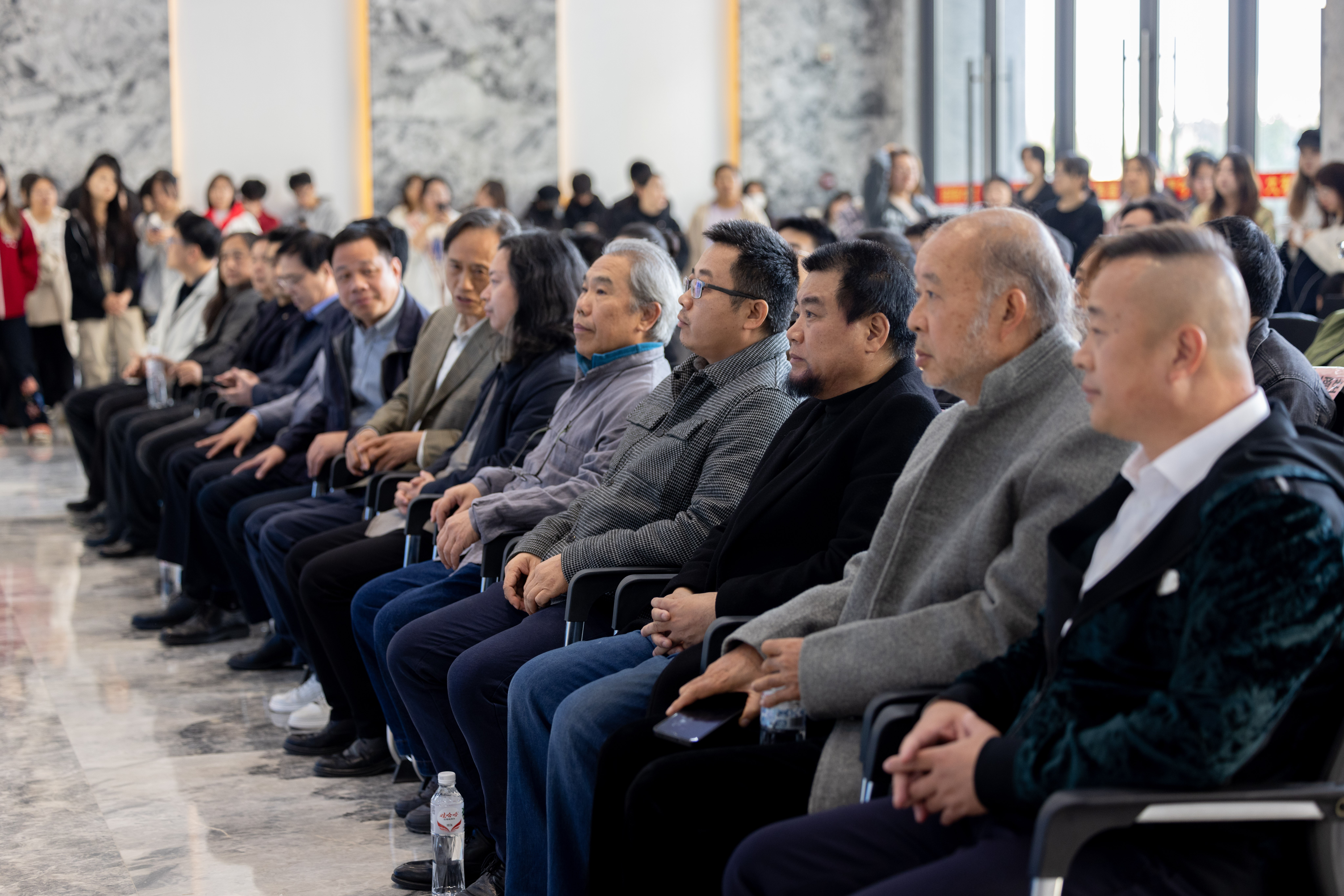 开幕式现场,嘉宾云集。原中央美术学院党委副书记、北海艺术设计学院特聘教授、展览学术主持王少军,北海艺术设计学院特聘教授、艺术家、收藏家何二民,北海艺术设计学院特聘教授、一级美术师、美术学院肖畅恒,北海艺术设计学院特聘教授、北海市画院院长、北海市美术家协会主席蔡群徽,北海艺术设计学院特聘教授、雕塑家刘峰,北海市收藏研究会会长游刘清东等艺术界知名人士悉数出席。
