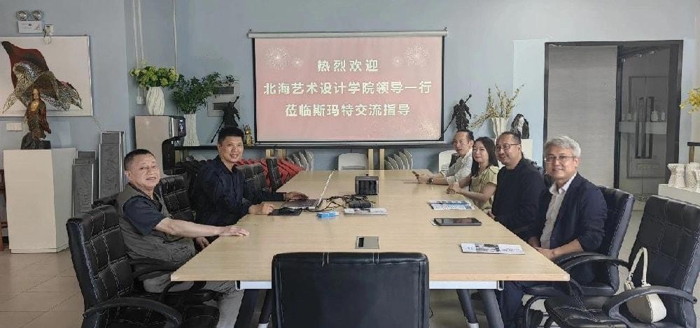 在斯玛特,创始人杨德安现场演示参数化设计与陶瓷3D打印技术,展示复杂结构的快速成型工艺。座谈会上,双方围绕“美学设计+材料工程+数字技术” 的跨学科培养模式展开研讨。企业指出,陶瓷3D打印人才需兼具艺术审美与技术实操能力,传统艺术教育需强化“设计-材料-软件”一体化教学。