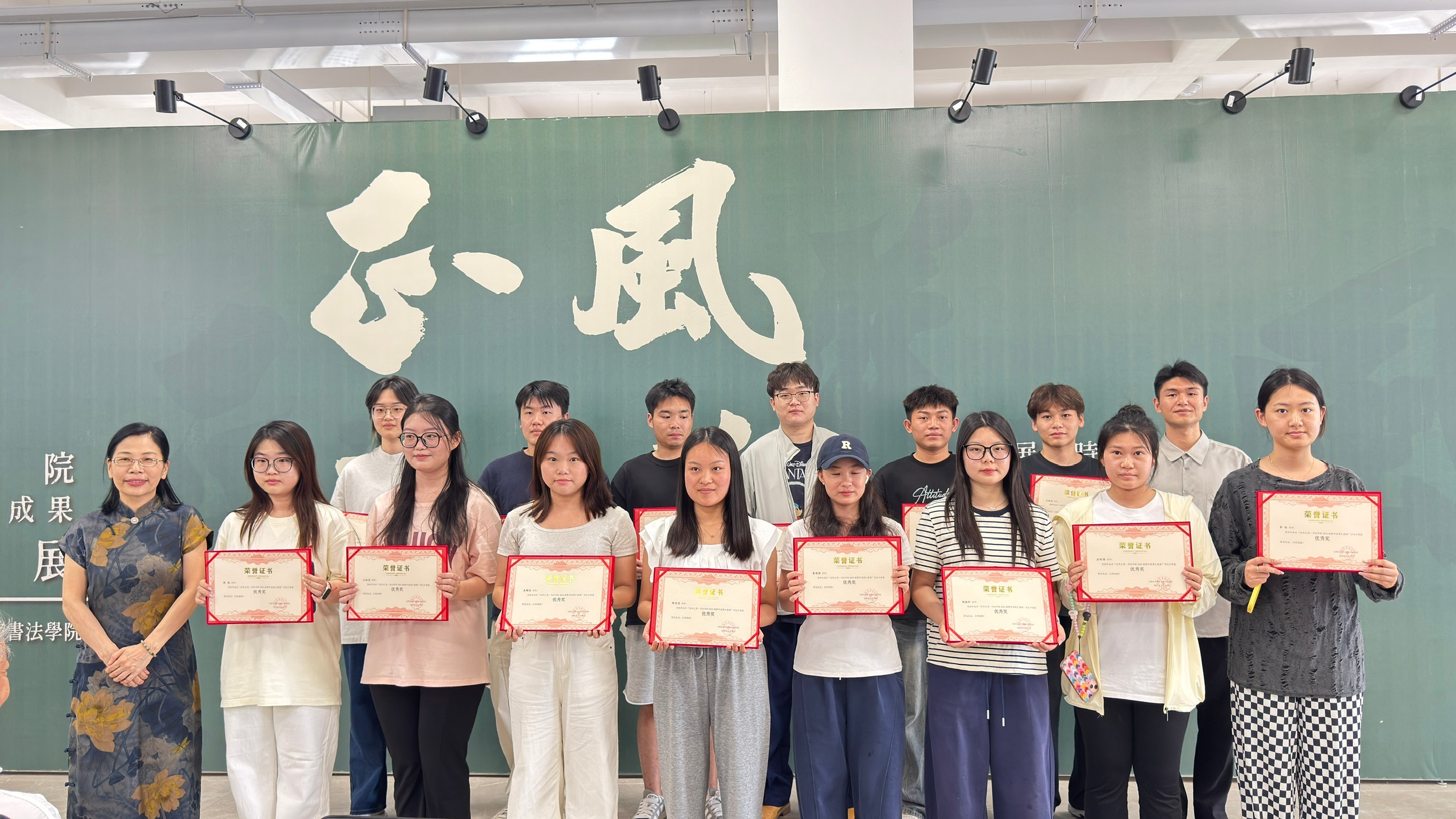 开幕式上还举行了颁奖仪式。本次展览共评优秀奖30件,学校领导为获奖同学颁发了荣誉证书,对他们在书法学习中取得的优异成绩表示祝贺。(何保 摄)