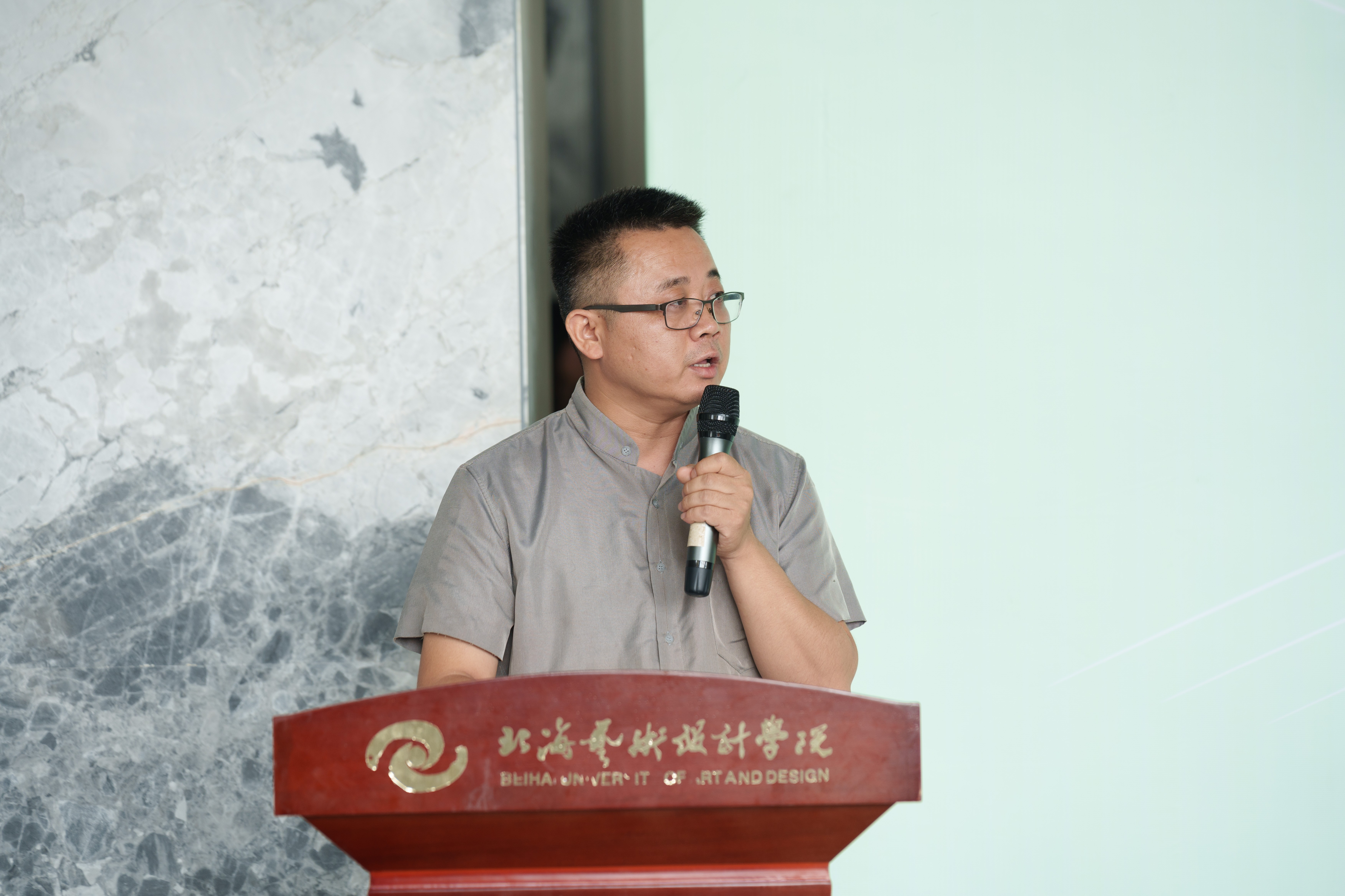 开幕式由美术学院教师李洋帆主持,北海艺术设计学院党委书记覃宪儒、常务副校长胡胜、副校长陶立阳,动画学院院长孙永辉,书法学院常务副院长苏乃从,美术学院党总支书记韩玮、执行院长龚为、党总支副书记鲁明阳、副院长金凯婧、副院长李炫勋、副院长陈建江、副院长殷声及众多美术学院教师齐聚现场,共同见证这场艺术盛宴的开启。