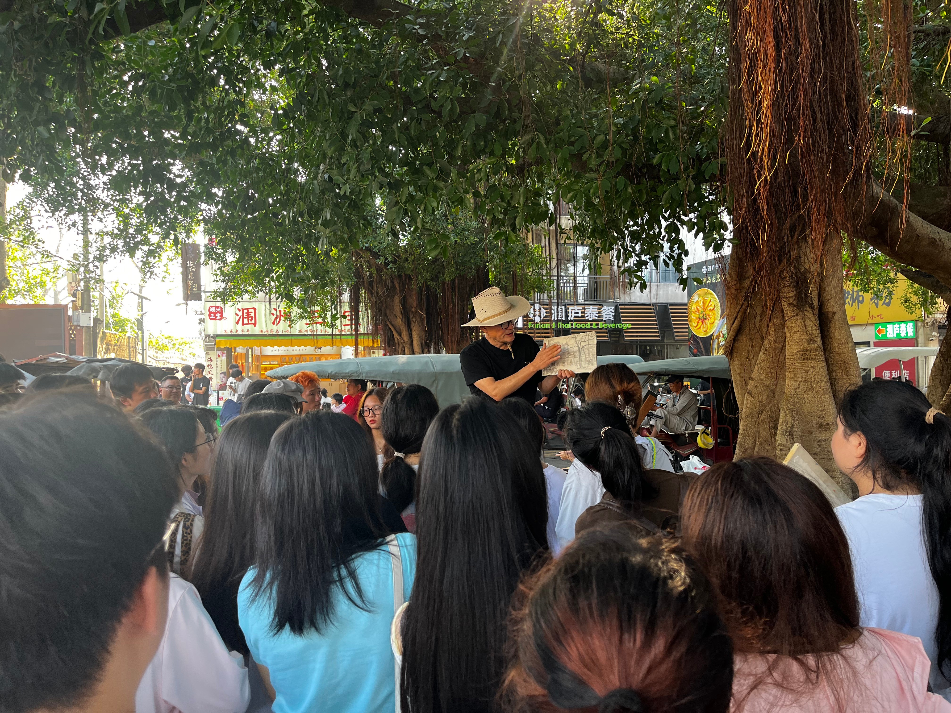 与此同时学院组织同学们前往涠洲岛红色旅游景区,这片位于岛湾背山坡的革命历史纪念地,见证了岛屿的烽火岁月。在庄严肃穆的红色广场上,学生们参与了一场“红色革命历史现场教学”。马克思主义学院专任教师李妙燕文姣丽通过讲授学生们探索“革命历史”的深厚内涵,实现了一次深刻的“思政教育”与艺术实践的融合。