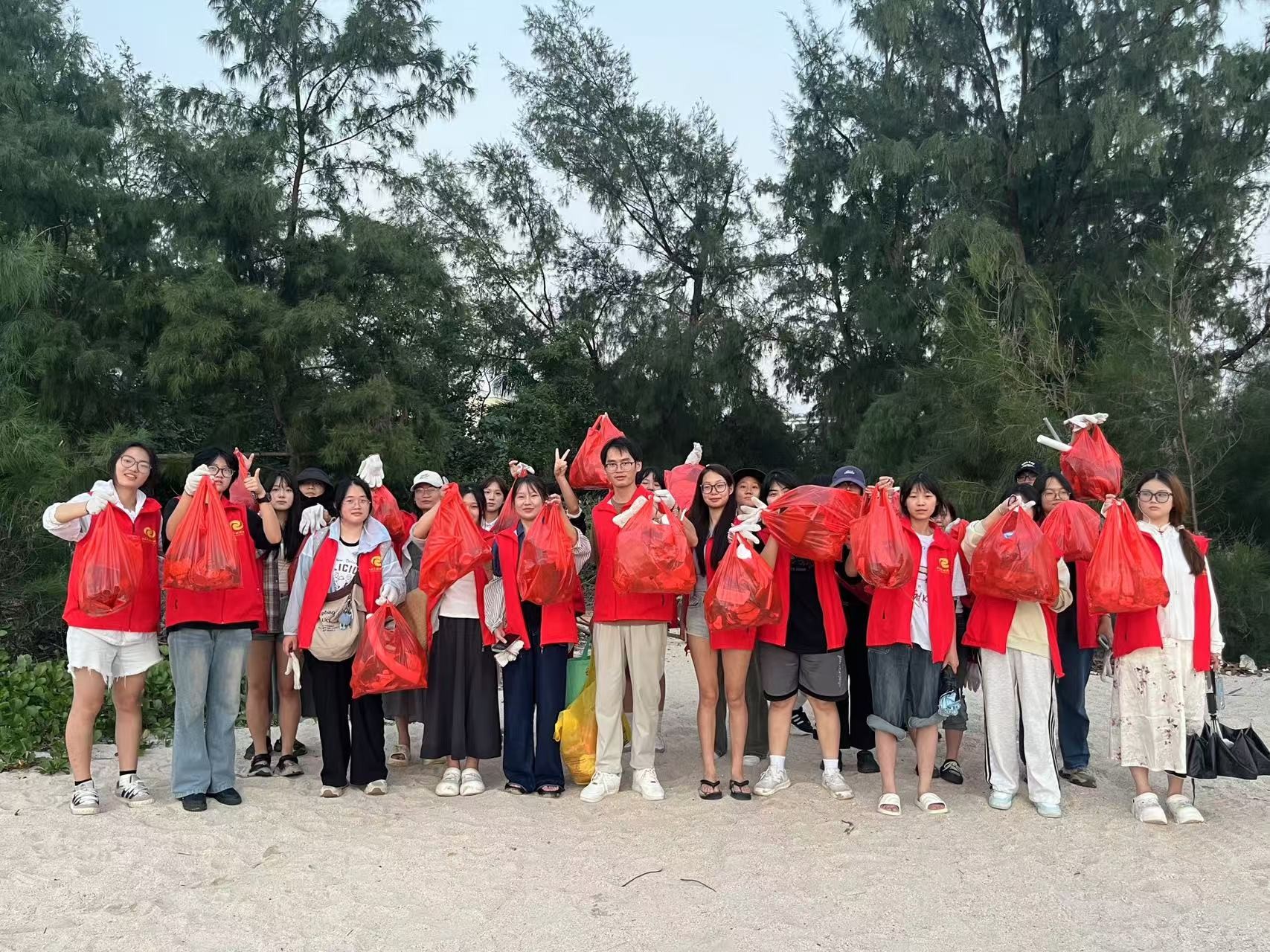 此外,分团委还组织了“守护蓝色海岸线,共筑美好涠洲岛”海滩清洁社会实践活动。各班班主任带领学生们积极投身志愿服务,用实际行动践行环保理念,展现了设计艺术学院学生强烈的社会责任感与积极向上的精神风貌。