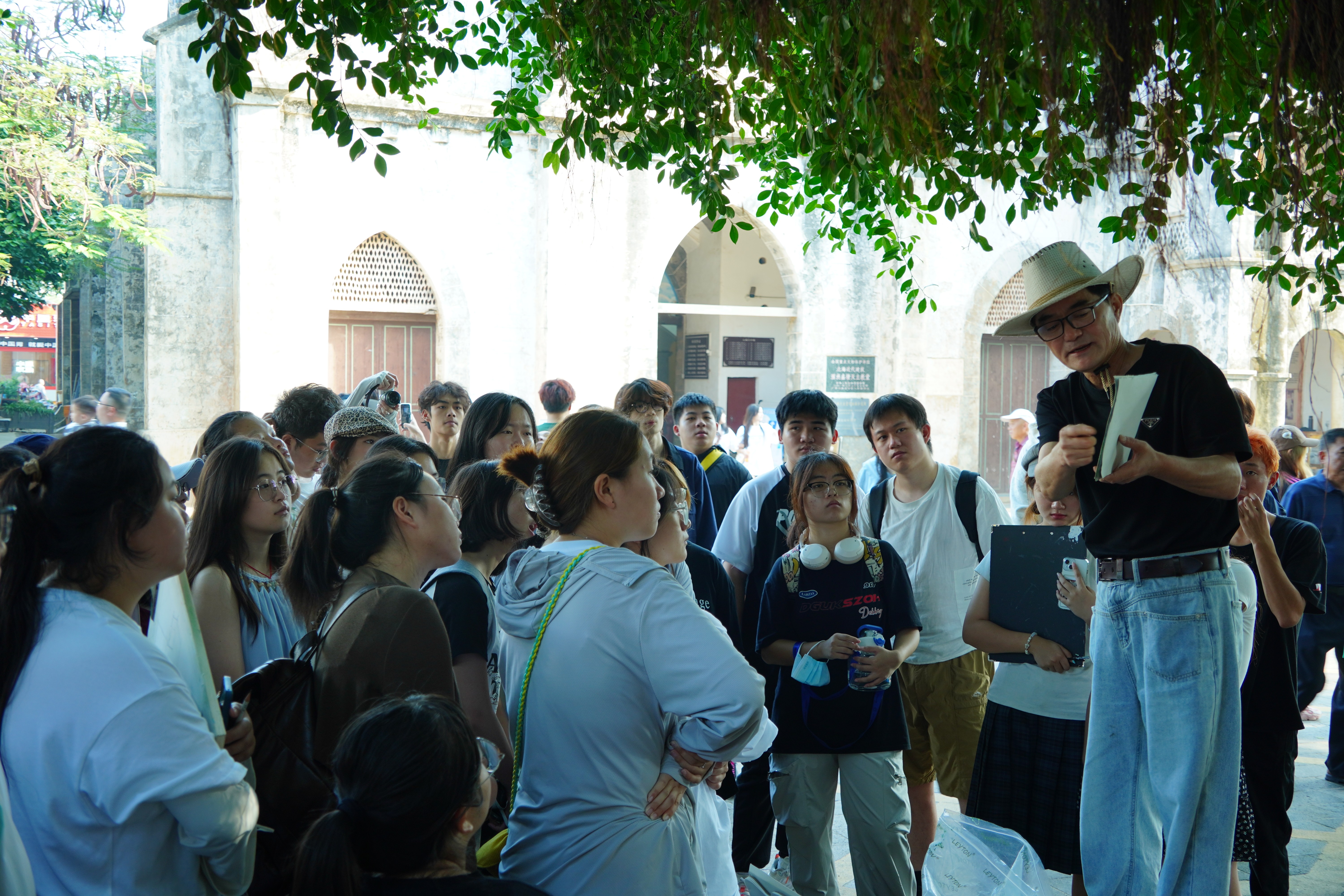 再度杨帆涠洲岛我院开展2024学生的涠洲岛综合实践教学活动此次活动分为两批次开展,由党委书记黄锦副书记林秀琪带队,学院名誉院长张夫也教授和马振庆、何平静等教授以及24级任课老师辅导员共同参与,同学们在自然与人文的交融中汲取创作灵感。