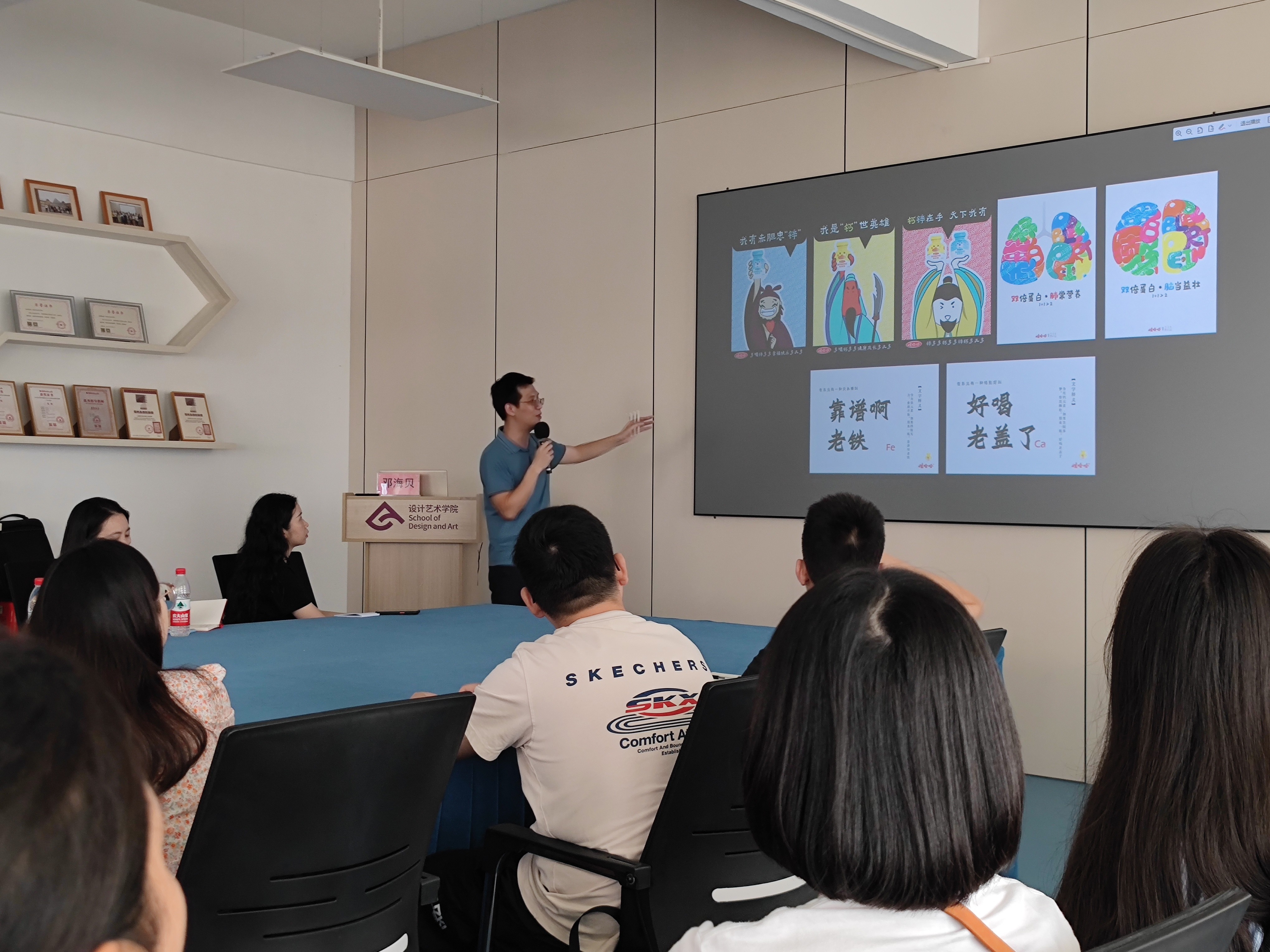 在培训中,邓海贝副教授首先分享了自己指导学生参赛的经验,通过解析近年来获奖作品的名次和特点,引导教师们思考什么样的作品能够脱颖而出。接着,他展示了部分获奖作品,从复盘、分析表现手法和广告创意三大原则等角度,详细解析了作品的创意和设计过程。邓副教授还结合自己的自媒体实践,分享了小红书、微信公众号、哔哩哔哩等平台上的设计思考,为教师们提供了全新的视角和启发。
