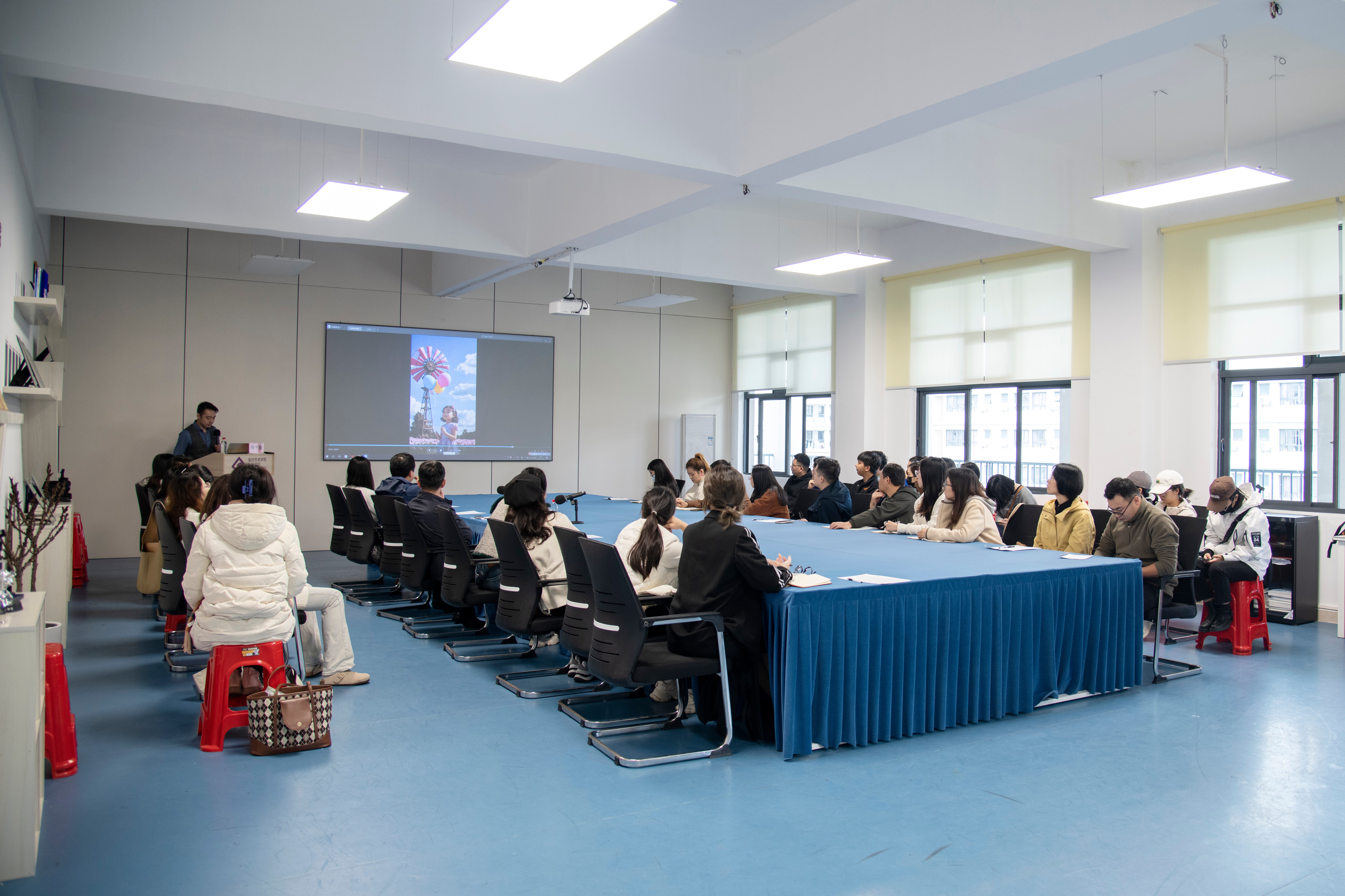 在随后的交流环节中,与会教师们纷纷向陈艺锋教授请教问题,分享自己的心得。白建强副院长对AI技术在设计领域教学中的影响给予了高度重视,与陈教授就如何更好地结合AI技术提升设计教学的质量和效果进行了深入交流。视觉传达设计专任教师曾竹竹谈到了如何引导学生正确使用AI工具的问题,她认为教师应注重理性、正向的引导,避免学生陷入过度依赖的困境。