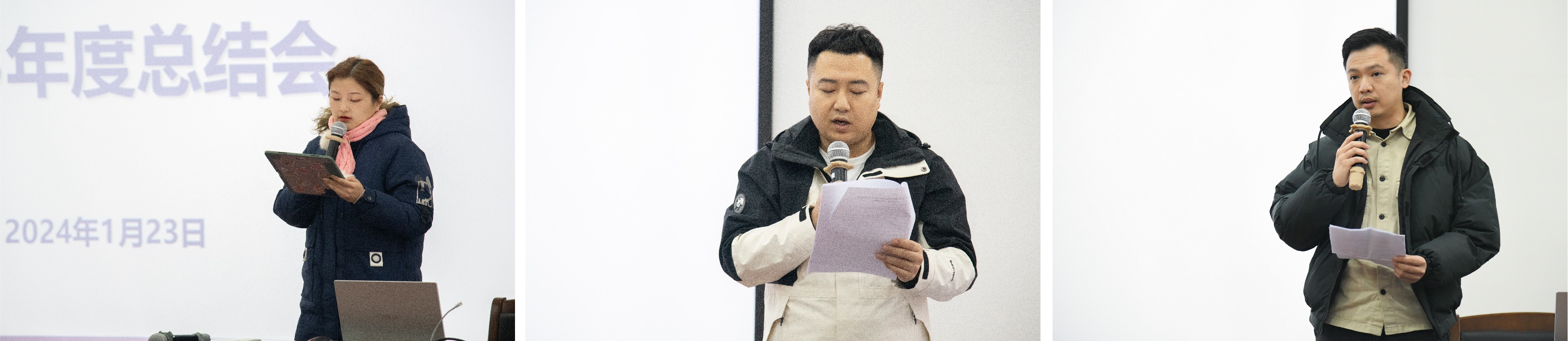 随后,各教研室主任进行了工作汇报和总结。视觉传达教研室主任张志回顾了教学质量提升、教师团队建设和学生反馈与成果展示等方面的工作,并分享了未来的工作计划和展望。产品设计教研室主任邓渠成从课程的设计与开发、教学质量评估、科研与学术交流等方面进行了总结和展望。服装设计教研室主任廖汀将本年度工作进行总结汇报,并提出2024年的工作和教学改革计划等工作方面的展望。