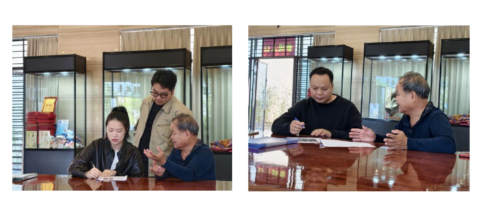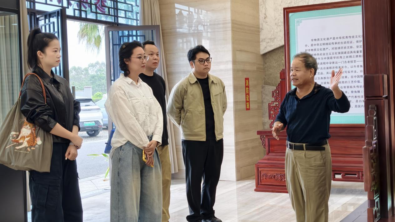 2025年11月6日上午,美术学院副院长金凯婧率队前往合浦金蝠角雕有限责任公司进行交流活动。随行人员包括雕塑教研室主任黄寿宁、学工办主任杨凯及美术学教研室副主任李洋帆。双方围绕雕塑与美术学专业的人才培养、课程共建及毕业生毕业设计进展等议题进行了深入探讨。
