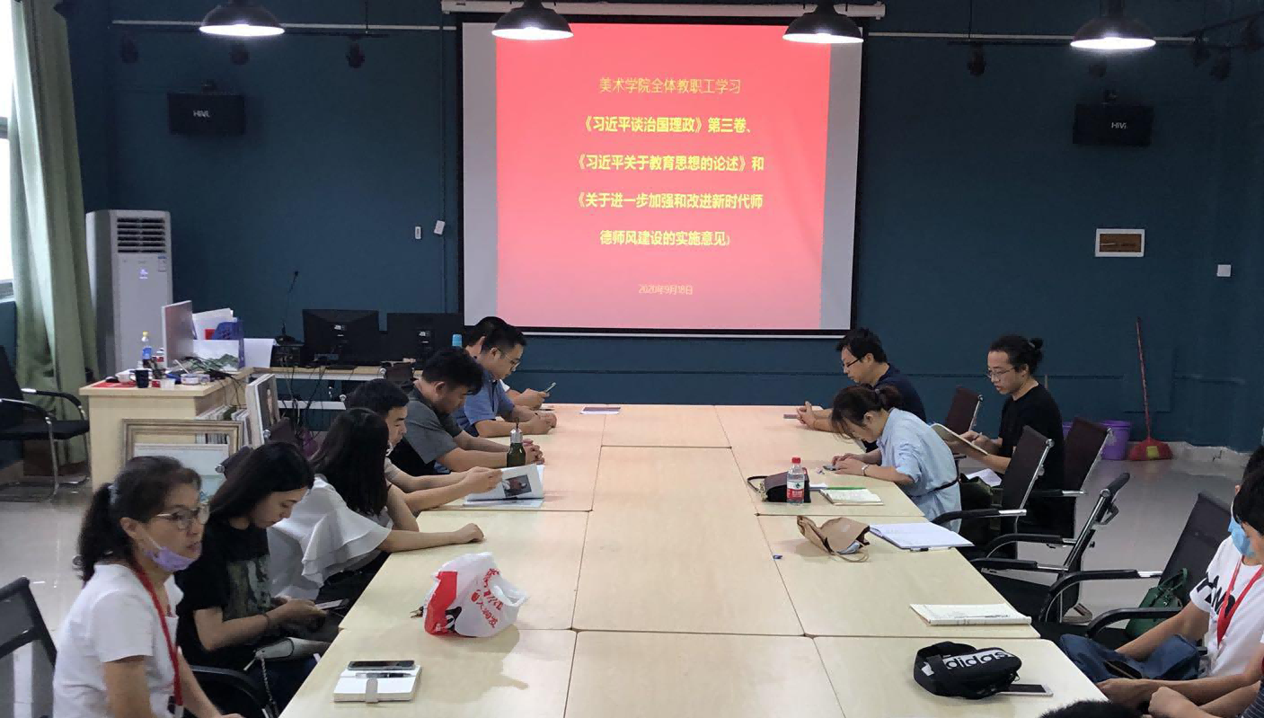 根据院党委北艺党宣〔2020〕4号文件精神,美术学院党支部组织学院全体教职工在线上和线下开展了《习近平谈治国理政》第三卷、《习近平关于教育思想的论述》和《关于进一步加强和改进新时代师德师风建设的实施意见》等学习活动。
