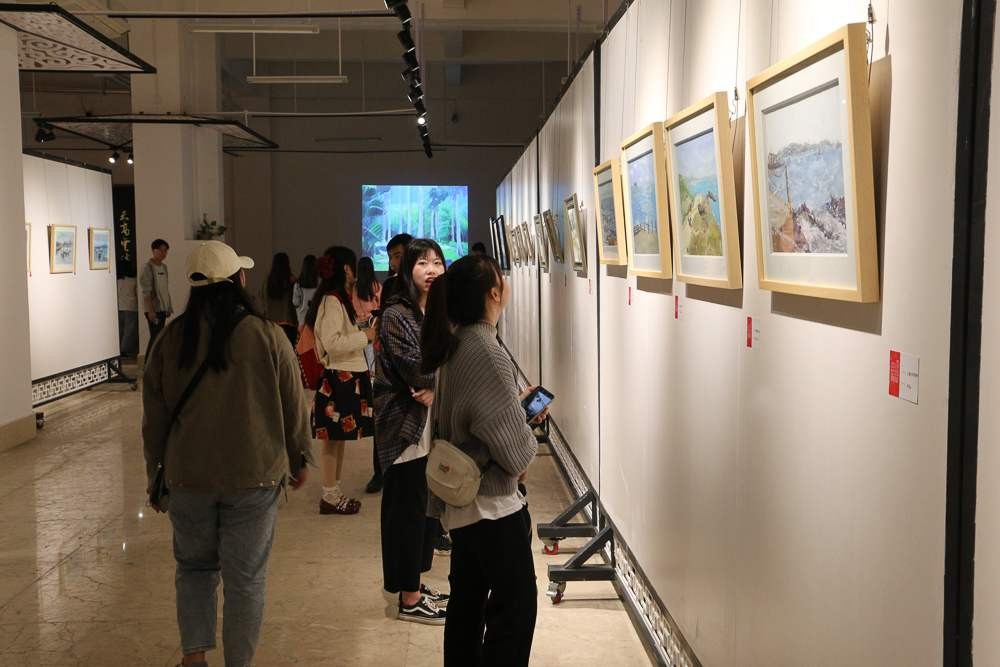 答:“非常满意。通过展会的布置养成学生的习惯,就欣赏画作整体布局而言。因为布置会展都是由老师带着学生进行,学生可以学习画作大小、横竖、布光、空间效果等方面。而随着经济水平的提高和发展,以后不论是私人画廊、各种展厅、艺术馆都会增加,如果带有这样的欣赏水平,也能增加自己的竞争优势。我个人比较偏好这次外出写生的作品,学生在外面才能看到不一样的建筑结构,更有味道也更有情趣,户外写生也更能激发学生灵感。”