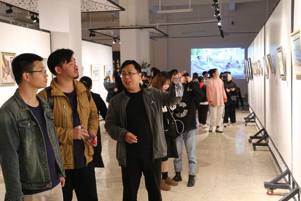 开幕仪式后,大家进入展厅观展,对作品进行现场交流指导。