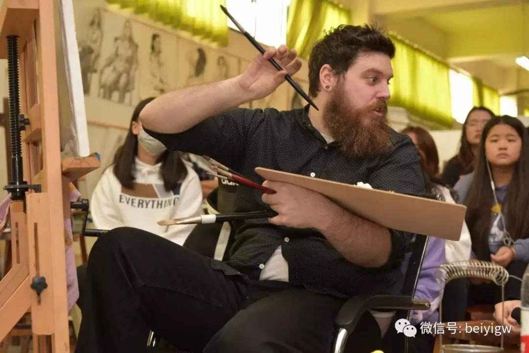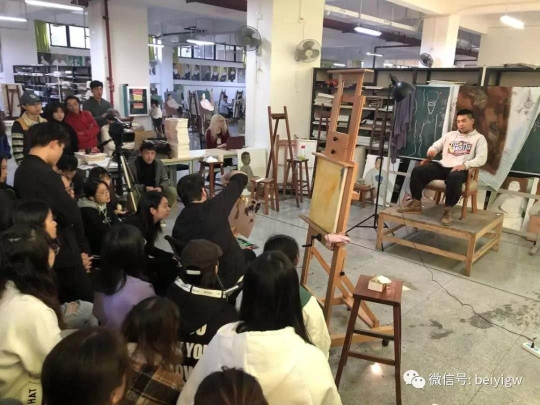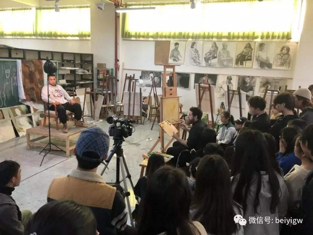 12月13日上午,迪伦主任亲临18级绘画教室,对绘画班色彩人物课程学生作品进行点评指导。为期三天的交流访问活动圆满结束。 (陈建江 摄)