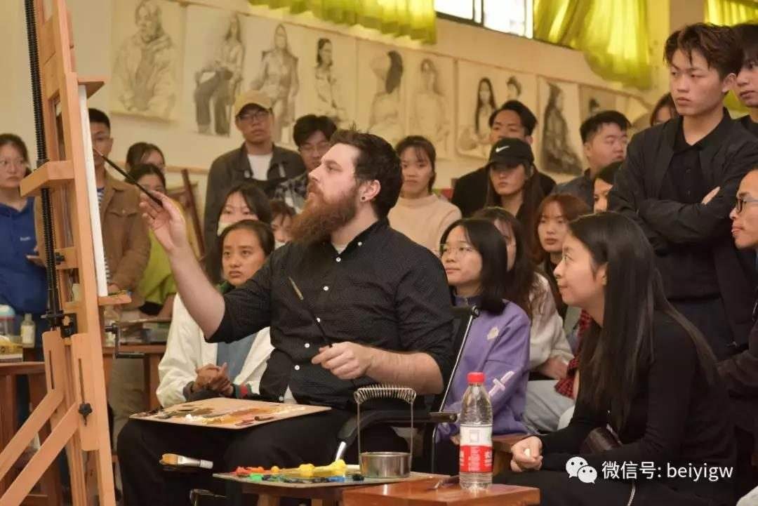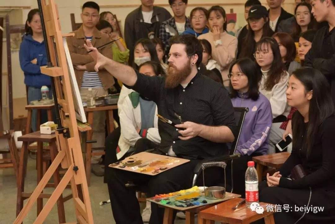 12月12日,美国芬兰迪亚大学艺术学院绘画系主任迪伦在美术学院绘画教室开展人像写生示范,现场吸引了许多师生前来积极观摩学习。