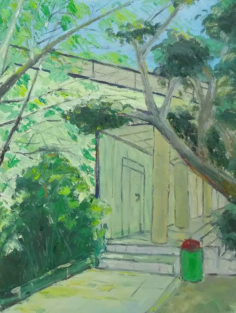 本次校园写生活动为期五天。师生分别集中在东、西校区取景作画进行写生。入冬后,空气中夹杂着丝丝冷意,北风也加快了南下的步伐,略带寒风,可是没有影响到同学们手中的画笔,他们或是坐在绿荫下,亦或是在校园路旁,三两成群,安静作画。
