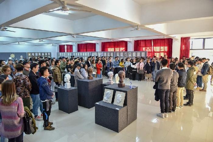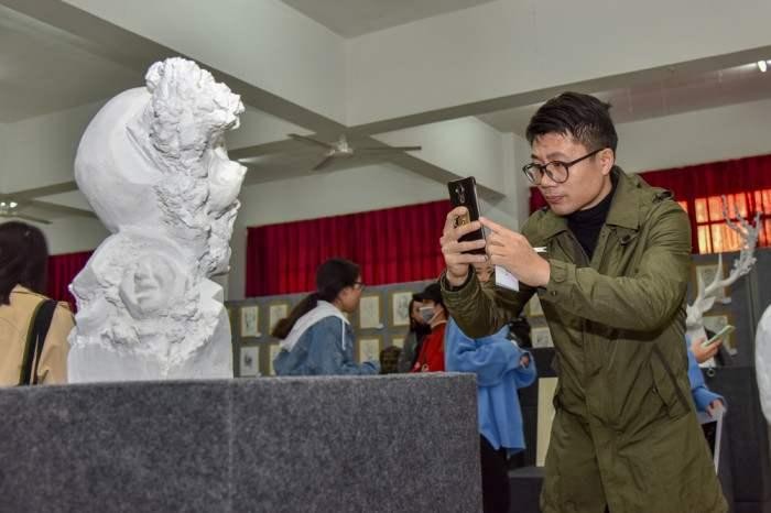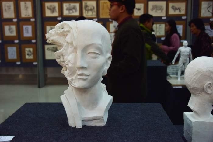 此次展览有老师和学生作品,其中作品除了有雕塑作品 还有一些绘画作品。进入展厅老师和学生的作品令我们惊叹, 在场的师生无不细细品酌每件作品的精妙之处,给我们带来 了一场视觉艺术上的饕餮盛宴。