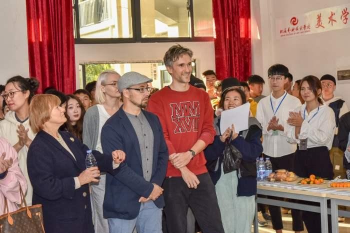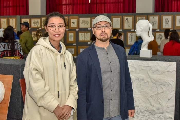 其次是副院长唐海致辞表示初次看到作品很是吃惊,并强调艺术之路艰辛、漫长,能走到最后的人是少数的, 对此我们不仅要努力,信念要坚定。然后送了“莫愁前路无知己,天下谁人不识君”这句诗来指引我们,最后让我们用作品去表达对世界的认识。