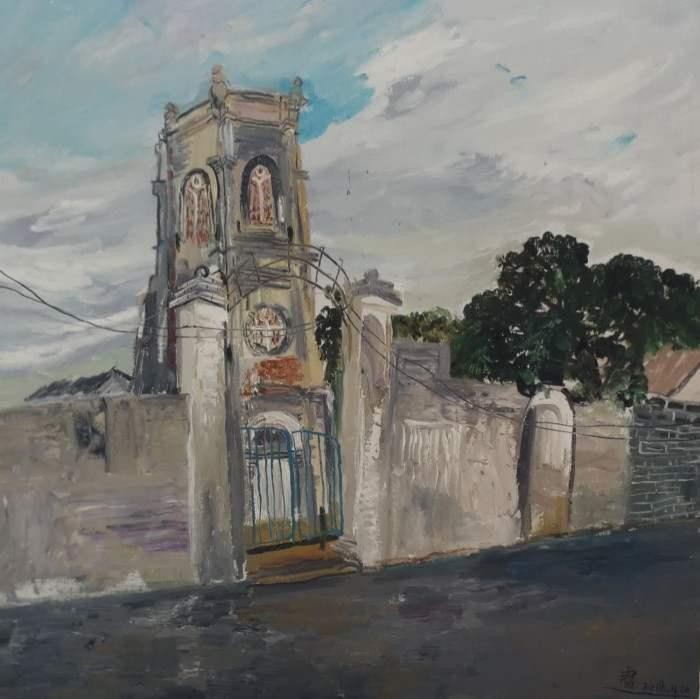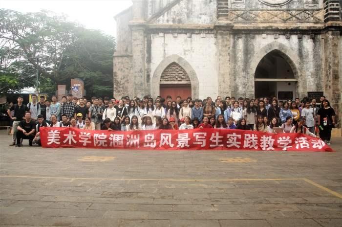 11月21日,全体师生乘车前往涠洲岛天主教堂景点,并集体合影留念。