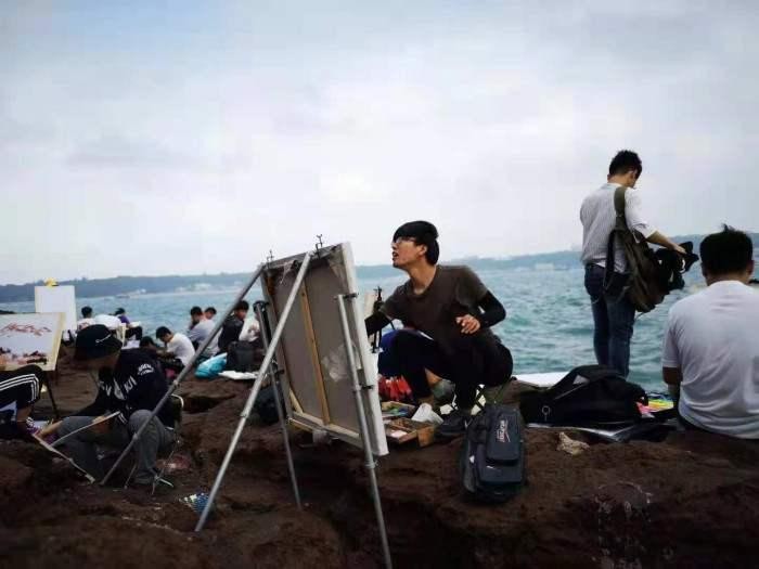 11月22日,全体师生前往涠洲岛老码头,并展开写生。