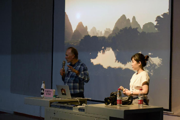 布瑞恩.K.史密斯老师从自己十三次每次到中国访问的照片进行讲解,有艺术性地分享了他拍摄桂林、紫禁城和长城的背景经历以及拍摄时的目的性。布瑞恩.K.史密斯老师表示拍摄不只是短暂的一个过程,而是作为一个好的艺术摄影要花很长的时间去准备,是一个耐心的过程。