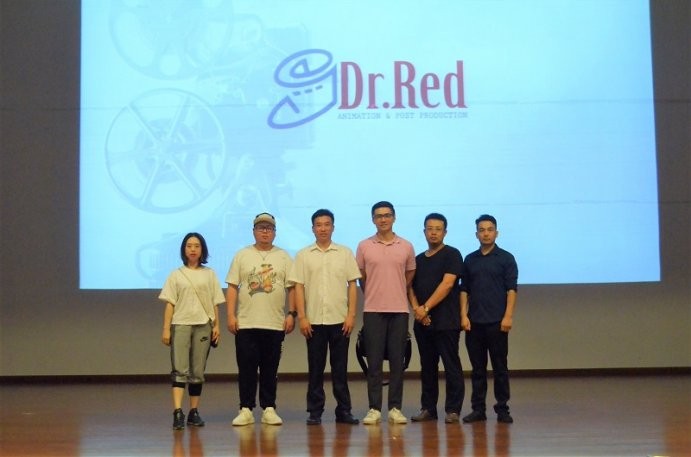 接着,由黄光宗总监给我们展示Dr.Red公司的优秀作品《小姜丝》、《油鬼》,并介绍公司的合作伙伴、领导阶层等,让同学们更加深入了解Dr.Red公司。随后,黄光宗总监向大家讲述自己在校求学时,从一个“门外汉”到动画导演的转变,使大家产生浓厚的听讲兴趣。他表示同学们既然选择了动画专业,就要风雨无阻的学习下去,有一份耕耘才会有一份收获。