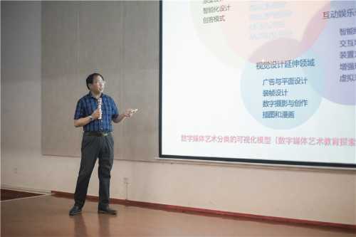 接着,李四达教授介绍了数字媒体艺术的就业方向。从近年来数字媒体专业的就业率来看,现代化数字媒体的应用越来越广泛,数字媒体专业具有认知性、多变性以及效率性,实用性等特点,学习上具有一定挑战性。李教授通过视频片段展示了数字媒体技术对生活的改变。