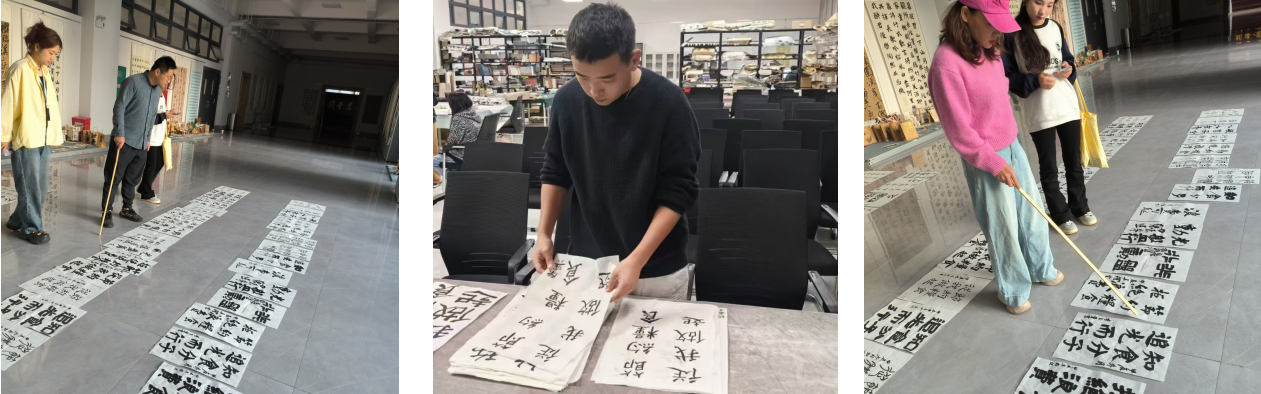 活动结束次日,书法学院党支部副书记左云飞,学工办主任、分团委书记李家琪,分团委指导老师石建玲对现场书写作品与集章打卡内容进行评分。