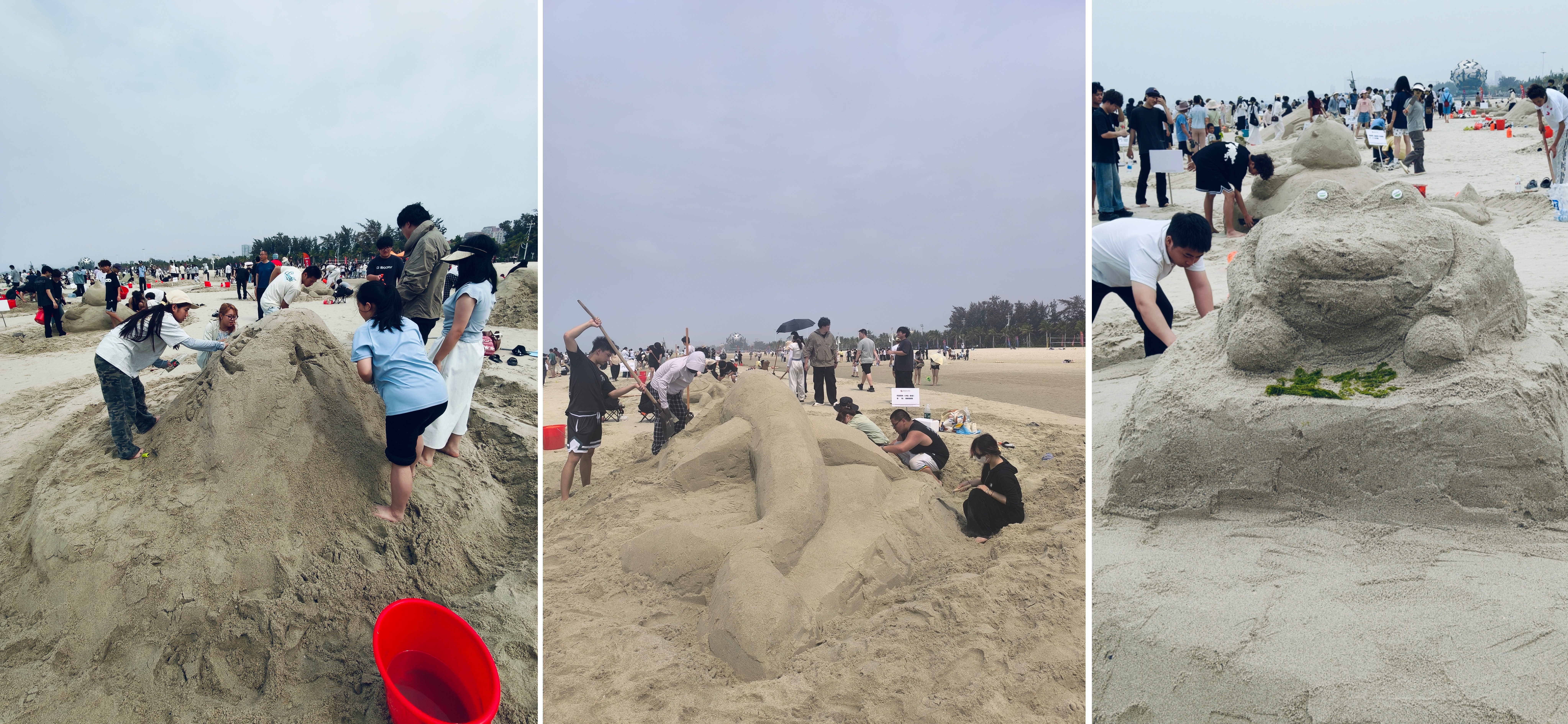 2025年4月18日,由北海艺术设计学院主办,北海旅游集团有限公司承办的北海银滩沙雕比赛暨北艺第二十二届沙滩运动会在北海市海滩公园成功开展。上午七点书法学院学工教师和各班辅导员老师带领学生陆续到达活动现场,开幕式九点准时开始,由校长卢新华致辞,节目精彩纷呈,随着一声炮响和彩烟升天,沙滩运动会正式拉开帷幕。
