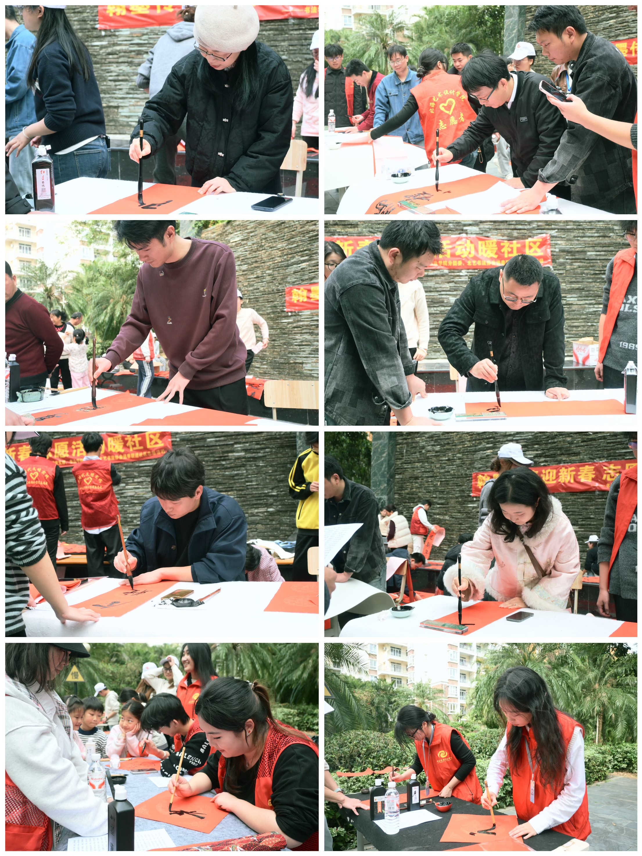 春联书写区内,校院领导与师生一同挥毫,将美好的新春祝福凝于笔端。一副副笔力遒劲的春联一个个红火饱满的福字跃然纸上,吸引了众多居民驻足欣赏、有序领取,现场洋溢着温馨融洽的节日氛围。