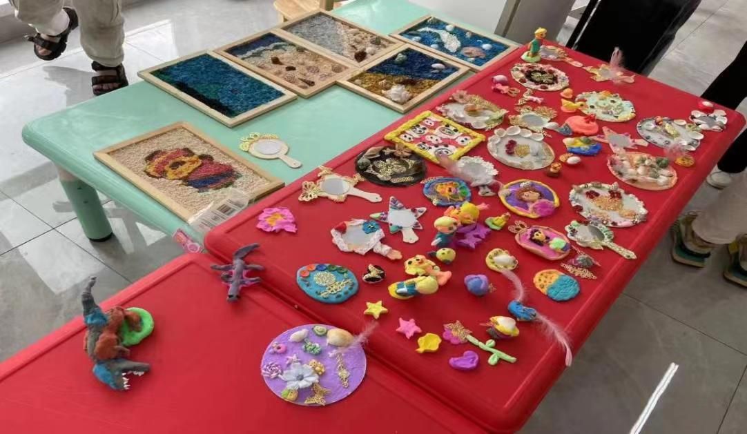 在美术课堂中,人文教育学院分团委书记史晓菲老师运用民族元素,利用涂、捏、粘、贴等方法带领学生共同了解纸浆画的制作过程。并且主动引导学生将颜料、彩泥、饰品与纸浆画相融合,通过巧妙搭配色彩、图案,进而制作出具有当地瑶族特色的民族娃娃。