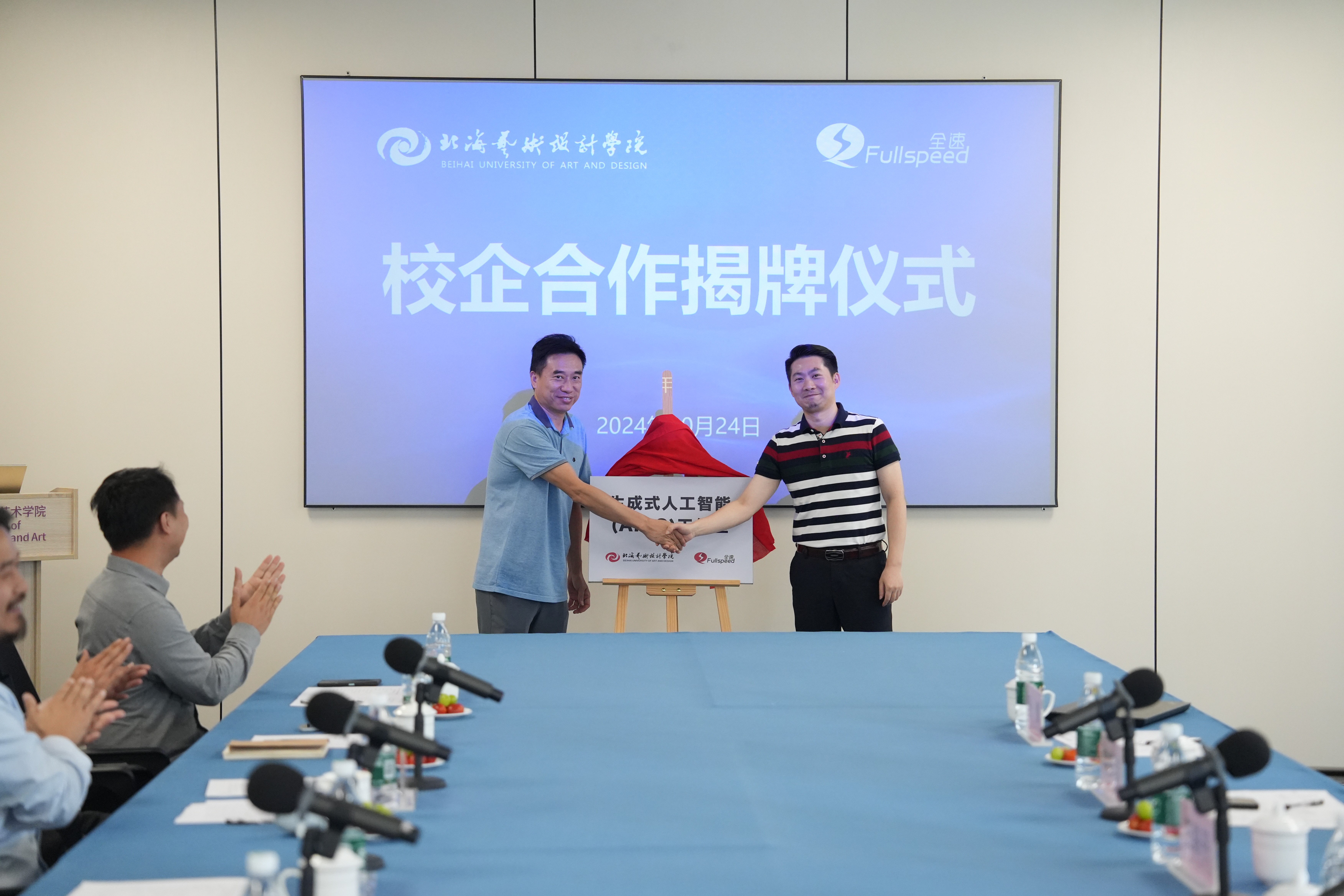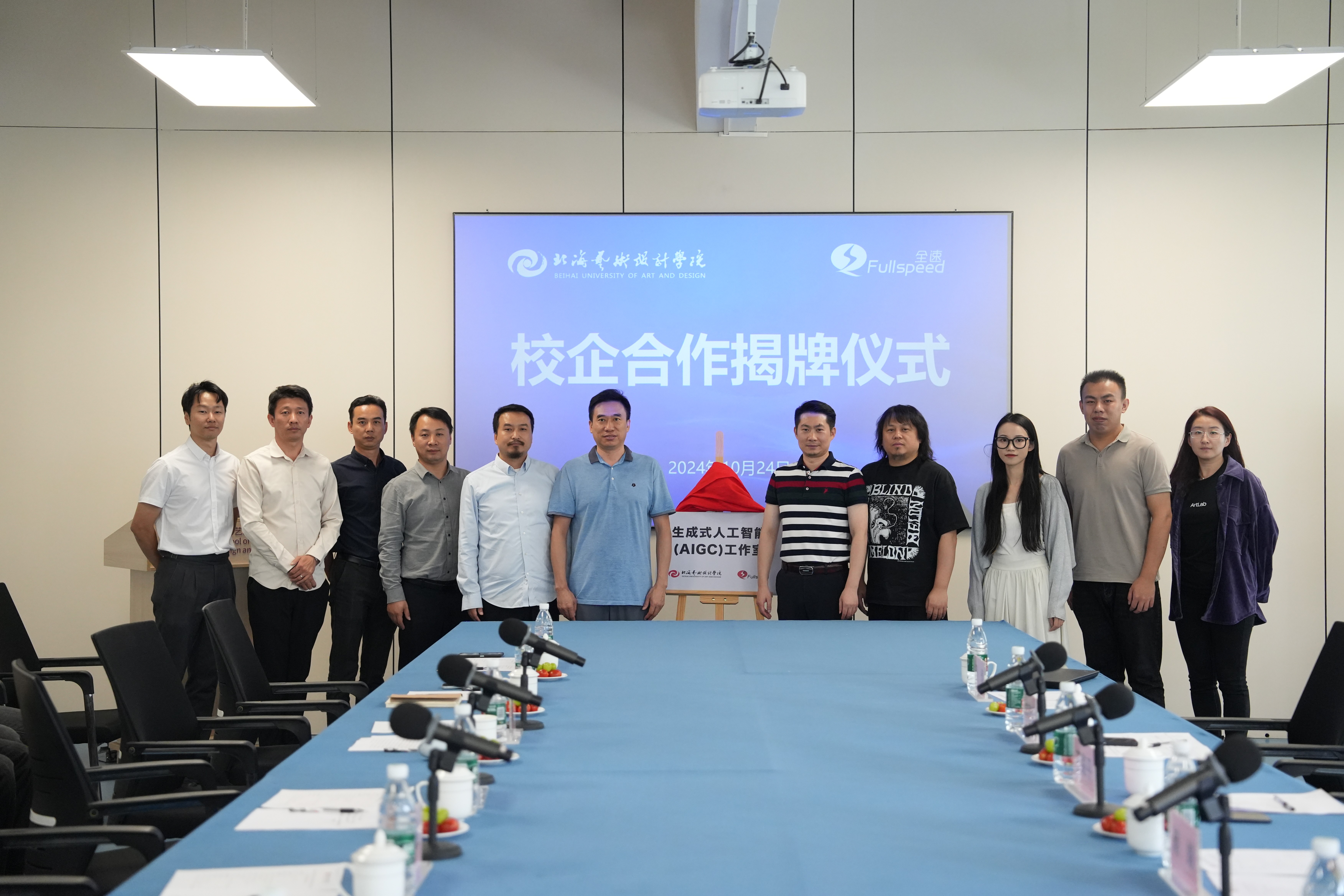 10月24日下午,我院于伦理楼408会议室,举办生成式人工智能(AIGC)应用师资培训研修班开班仪式暨AIGC应用与发展研讨会。出席本次会议的嘉宾有阿里云设计中心总监王路平、体验设计专家胡峻;全速集团副总裁、全速教育事业群总经理洪德志,产教融合总监吕成、资深创意设计导师刑倩;北海艺术设计学院副校长陶立阳、院长李林平、副院长白建强、视觉传达设计教研室主任张志、产品设计教研室主任邓渠成及教师代表,会议由李林平院长主持。本次活动标志着我院在探索AIGC领域教育合作方面迈出了坚实的一步,旨在通过产教融合,培养更多适应未来行业需求的创意设计人才。