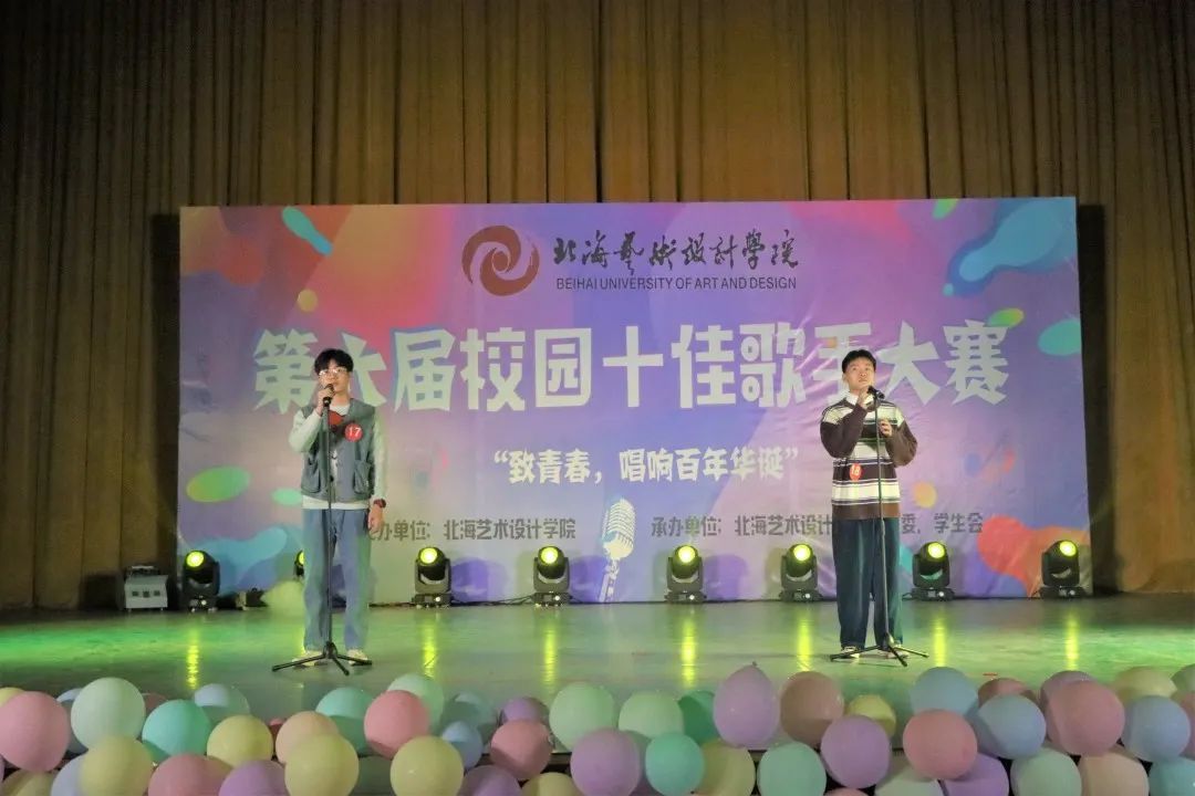 北海艺术设计学院“致青春,唱响百年华诞”第六届校园十佳歌手大赛于12月4日晚上19:30在西校区大礼堂拉开了决赛的序幕。我们有幸邀请到的领导嘉宾有:团委书记唐良春老师、学工处副处长唐道明老师以及各二级学院各处室老师。出席现场的评委老师有宋慧敏老师、唐道明老师、黄金老师、杨美琪老师、徐凯华老师、王云龙老师、陈万奇老师、余黎泓老师、王慧老师、雷勇老师、蒋志珍老师。