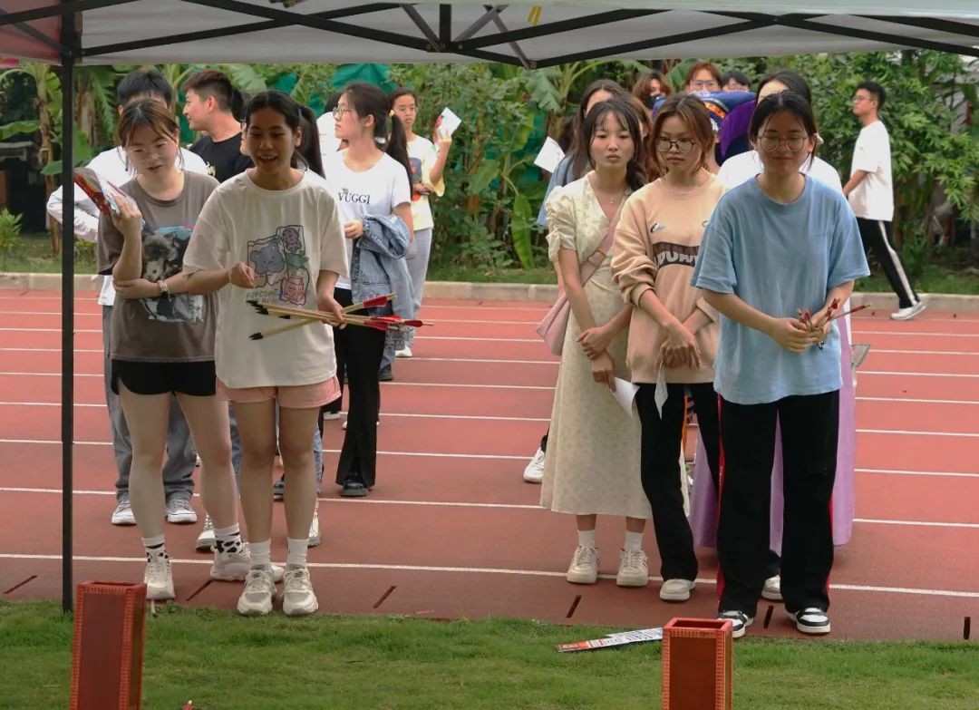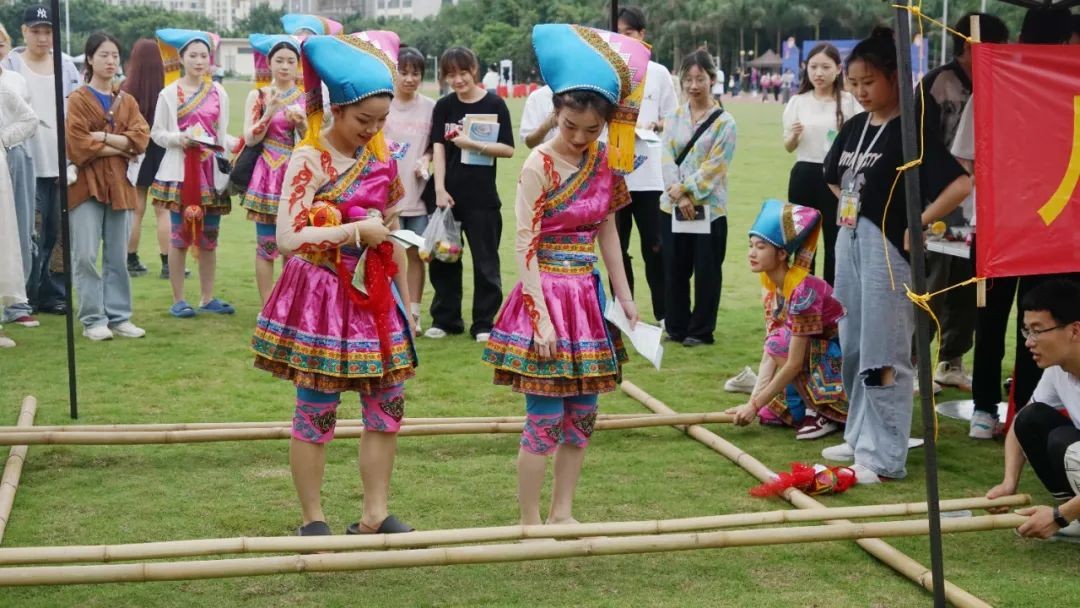 启动仪式结束后由我校团委及各二级学院分团委共同开展民族团结游园活动,分别有欢跳“竹竿舞”;谁的“绣球”投的准;“山歌”唱起来;当舌尖上的糯米饭碰撞上大彩蛋;律动舞狮;旱地龙舟;蒙眼摸福;共享踏板;投壶;民族服饰体验打卡共十项游戏。