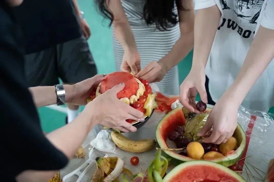 为了丰富学生课余生活,活跃校园气氛,培养学生的创新思维,发掘大学生的动手能力和增长创新意识,同时通过开展丰富多彩的活动来弘扬创新精神,体现大学生朝气蓬勃、积极向上的精神状态,北海艺术设计学院于5月7日15:30在西区食堂三楼举行“瓜果飘香,一起消消乐”水果拼盘设计大赛。