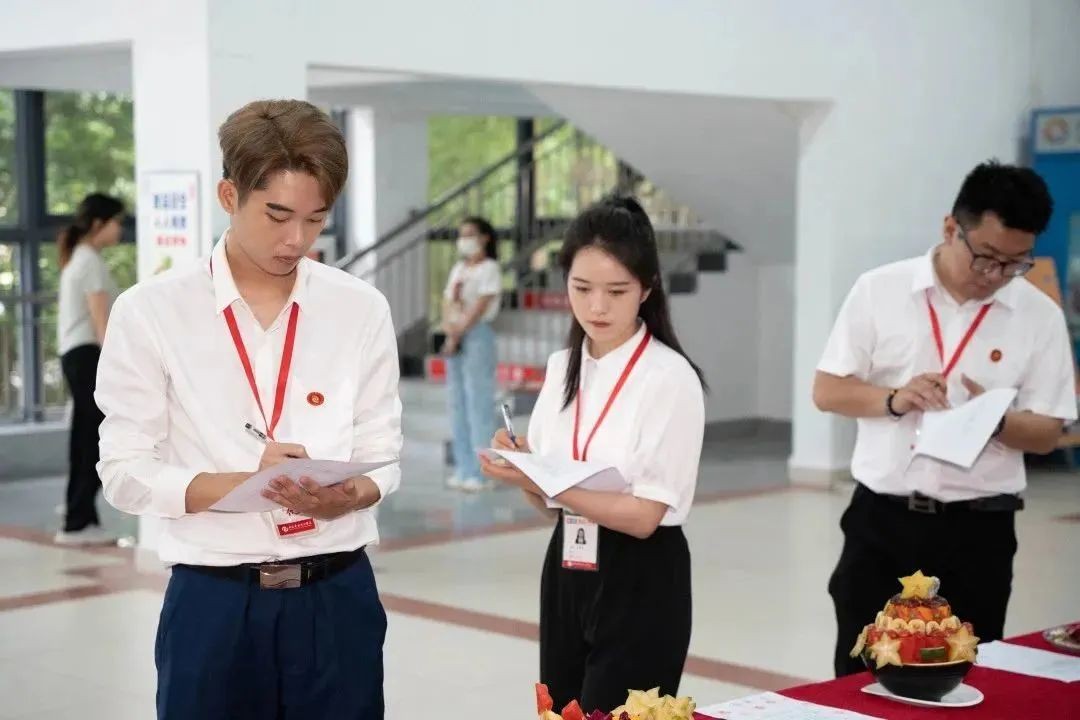 参赛选手在规定时间内完成作品后,由评委老师进行打分,评选出获奖选手。参与评选的老师有校团委书记唐良春、校团委组织部部长陈文斌、校团委老师陈万奇、林修竹、张岂源、王燕亭。